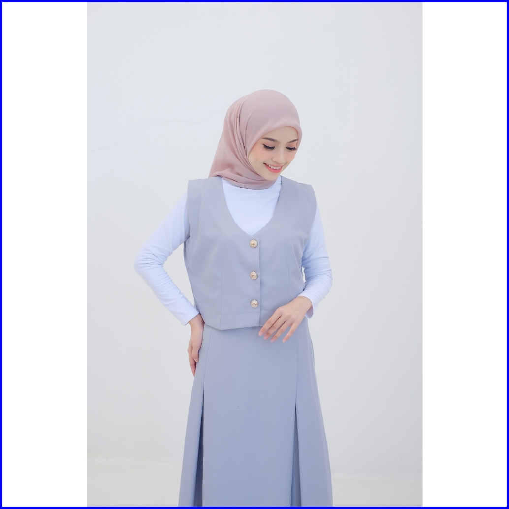 Ahlami-oneset Vest Skirt Rok Payung Kerja Rok Hitam Vest Koren Style