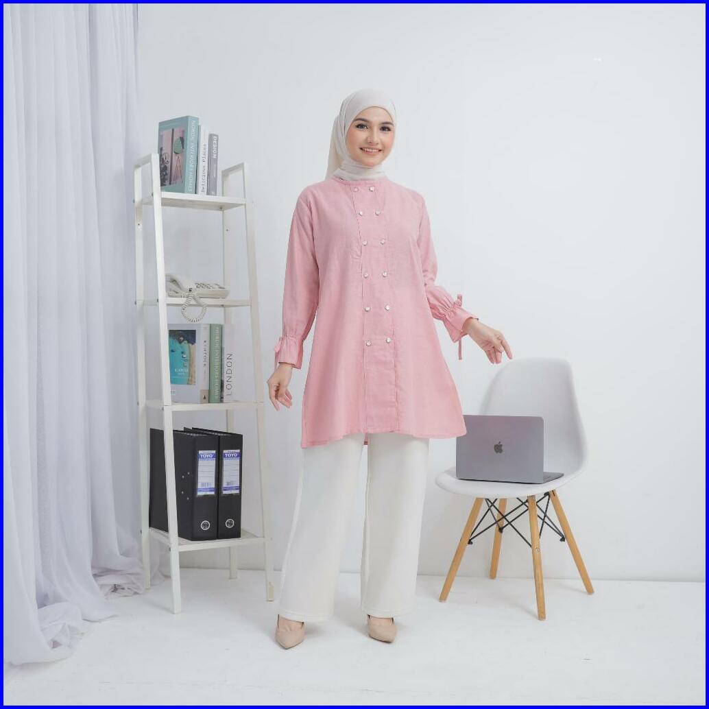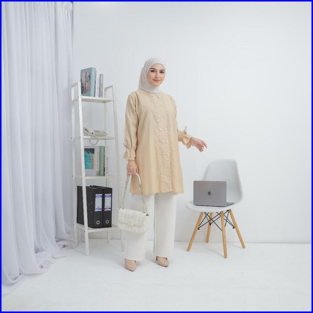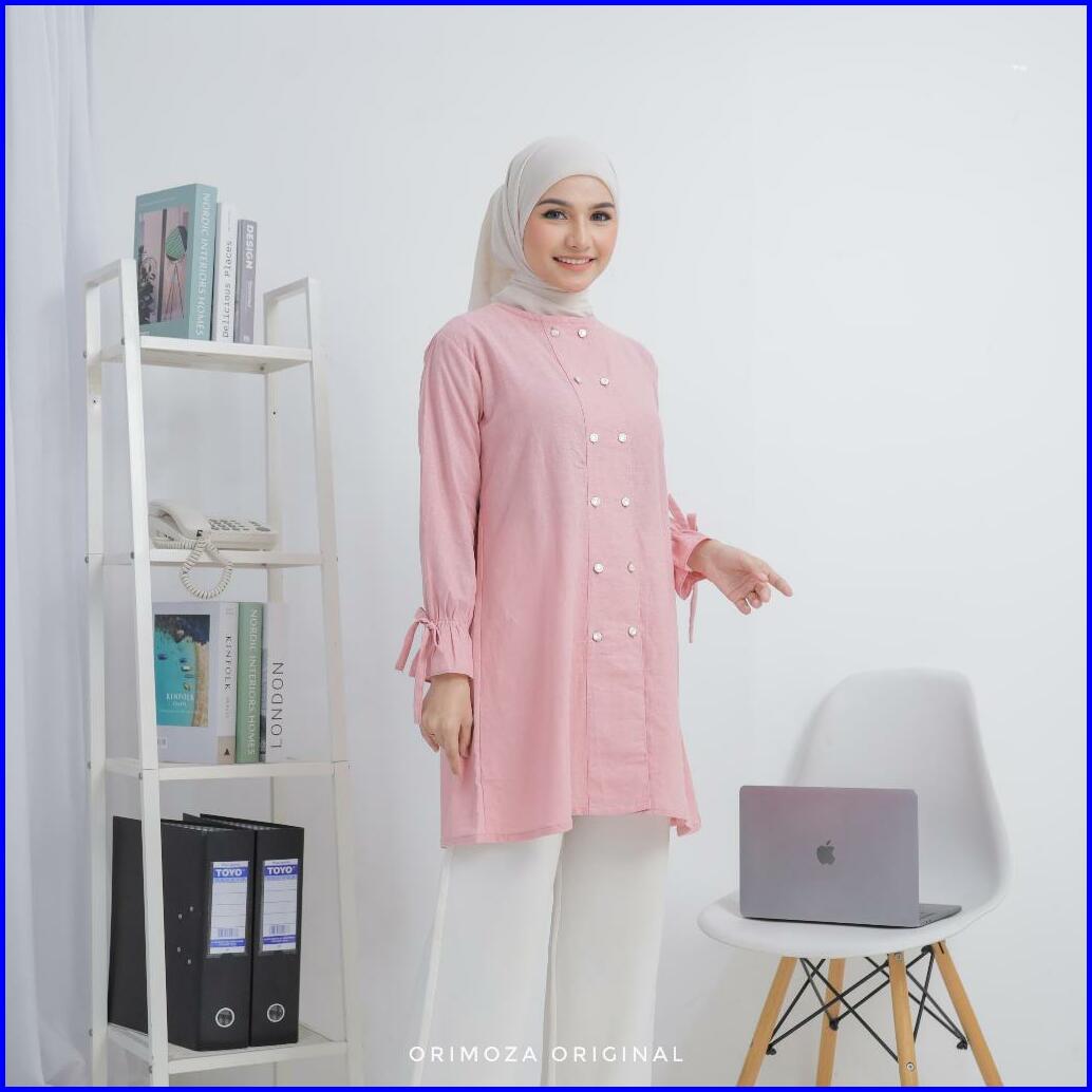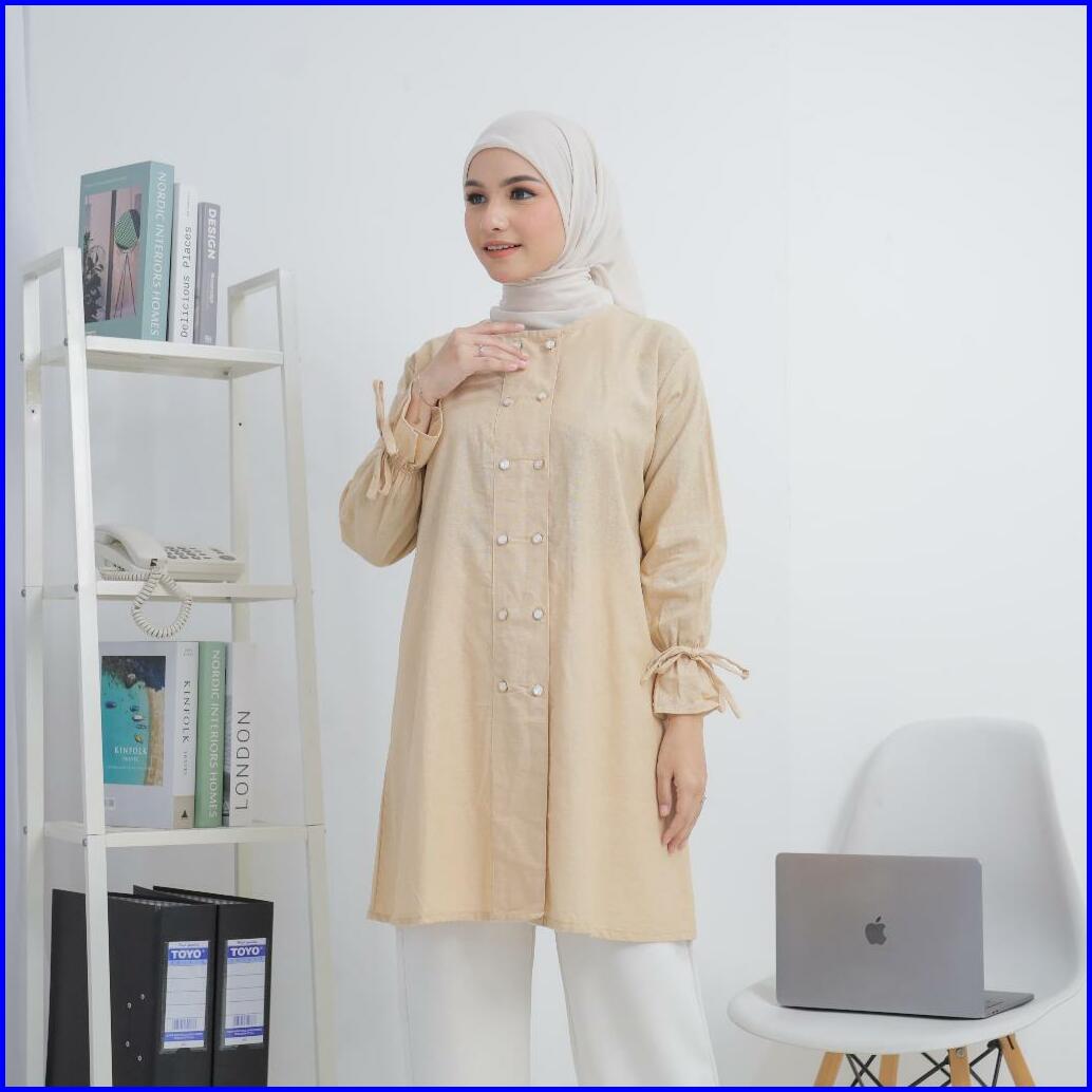 Orimoza Tunik Polos Lengan Karet Linen Amira