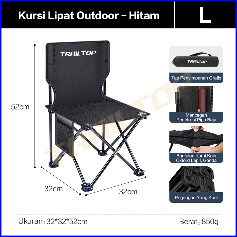 Trailtop Kursi Lipat Camping Kursi Lipat Outdoor Tebal Dan Tahan Aus Beban 120kg