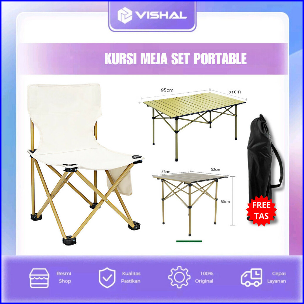 Vishal Kursi Lipat Camping Outdoor Portable Meja Lipat Kemping Kursi Lipat Set Serbaguna Mudah Camping Folding Chair Vs-