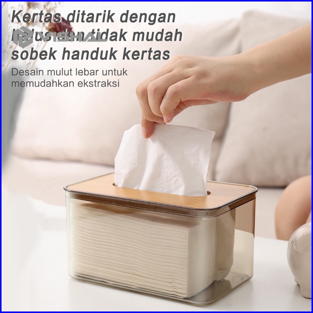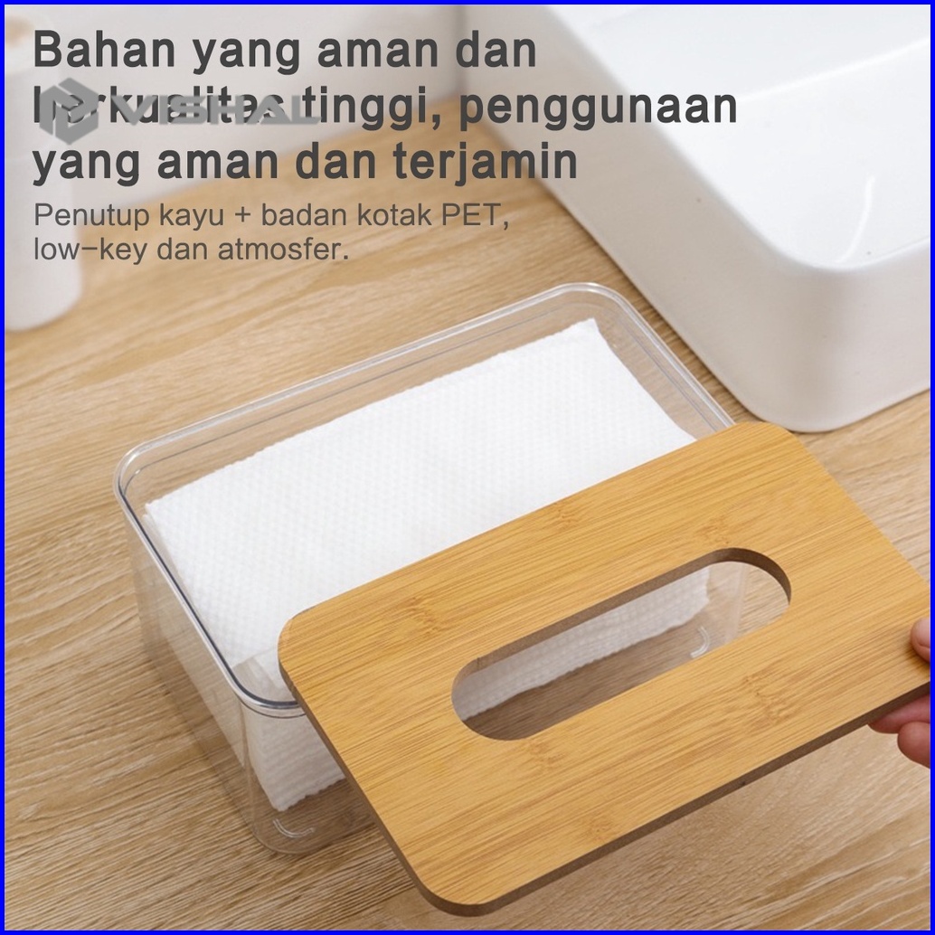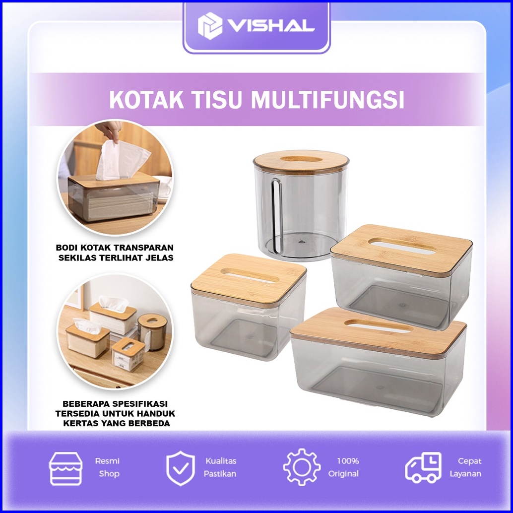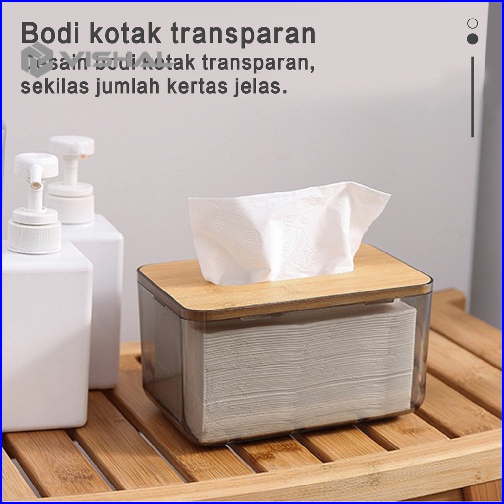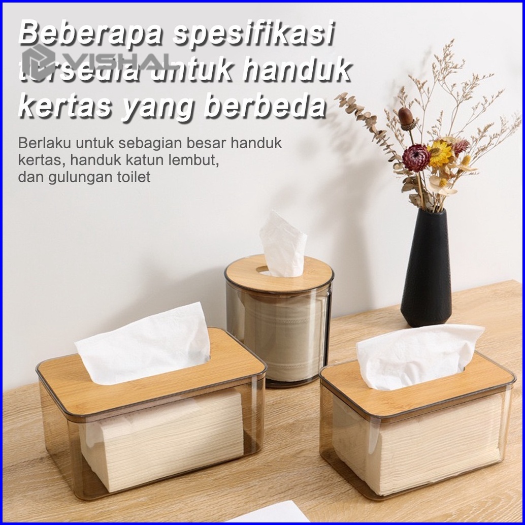 Vishal Tempat Penyimpanan Tissue Transparan Kotak Tisu Estetik Minimalis Tutup Kayu Premium Quality Vs-215