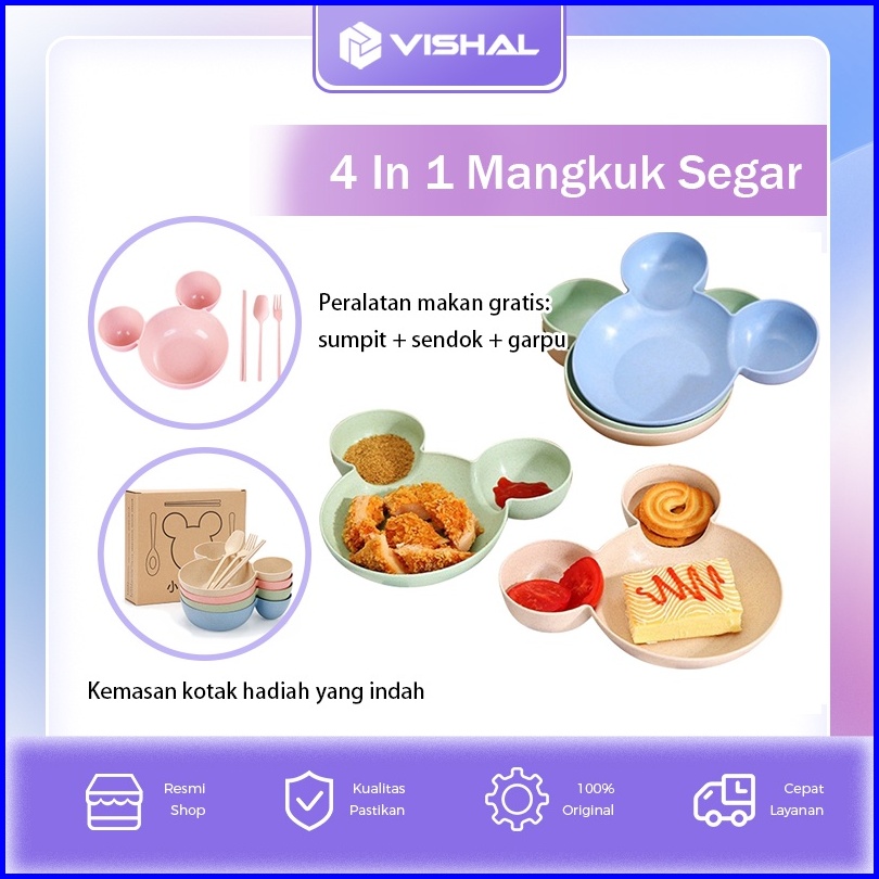 Vishal Bayi Mangkok Set Anak Mangkuk Bentuk Kartun Gandum Set 4 Pcs Bpa Free Vs-25