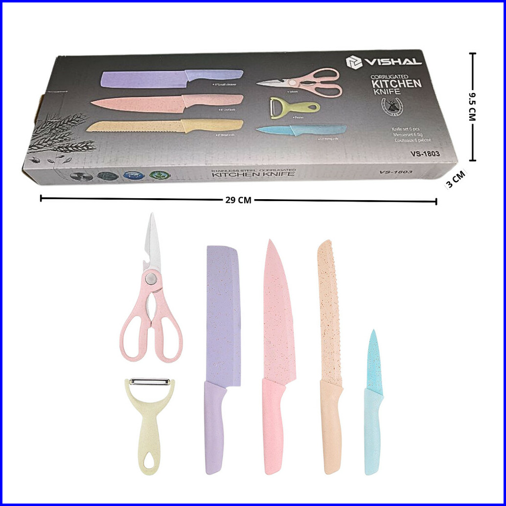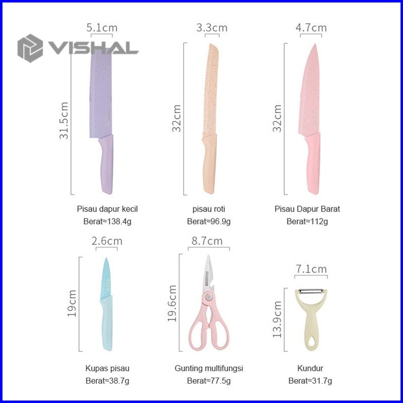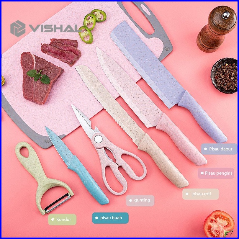 Vishal Pisau Jerami Set 6 In 1 Kitchen Knife Set Pisau Dapur Set Stainless Knife Anti Lengket Isi Peralatan Masak Pisau