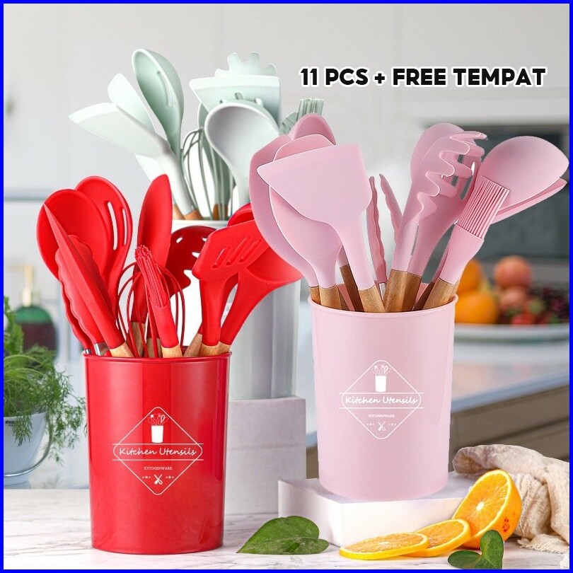 Vishal Paket Combo 2in1 Set 4 Pcs Mangkok Bulat Jerami Alat Masak Sehat Tahan Panas Silicone Kitchen Tools Set Spatula S