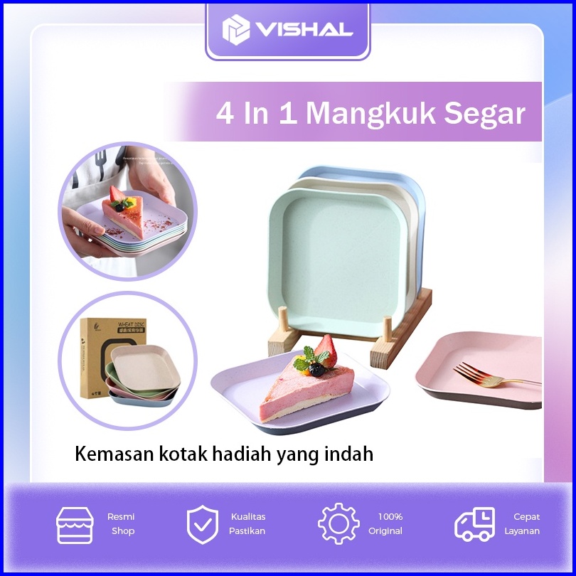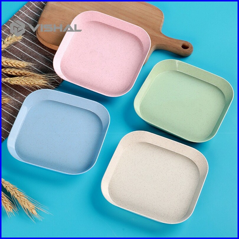Vishal Wheat Straw Piring Square Plate Set 4 Pcs Warna Warni Dinner Plate Bentuk Kotak Piring Makan Vs-21