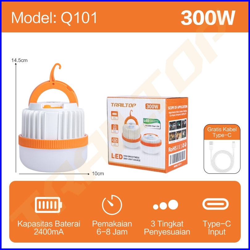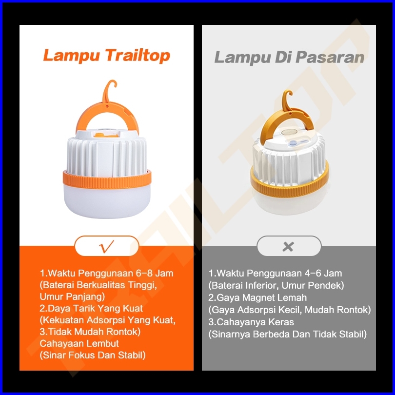 Trailtop Lampu Camping Led Lampu Emergency Super Terang Tahan 6-8 Jam Charger Type-c