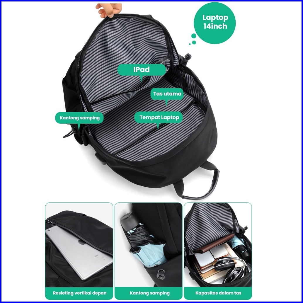Freeknight Tas Ransel Backpack Fashion Tas Punggung Sport Unisex Tas Laptop Usb Charge Tas Travel Tas Sekolah Polos Tr70