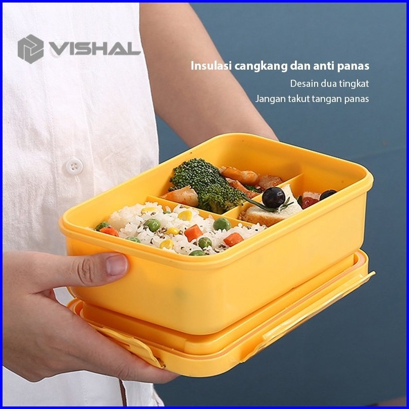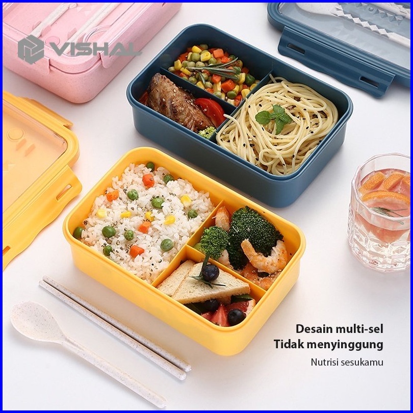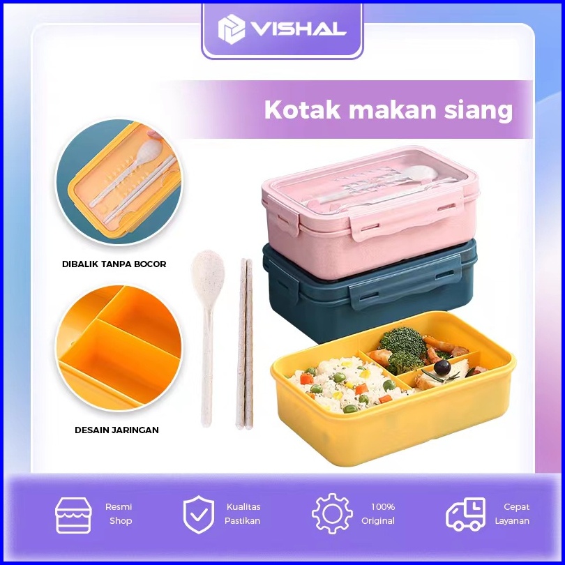 Vishal Lunch Box Set Kotak Bekal Makan Jerami Gandum Kotak Makan Anti Tumpah Free Sendok Dan Garpu Vs-55