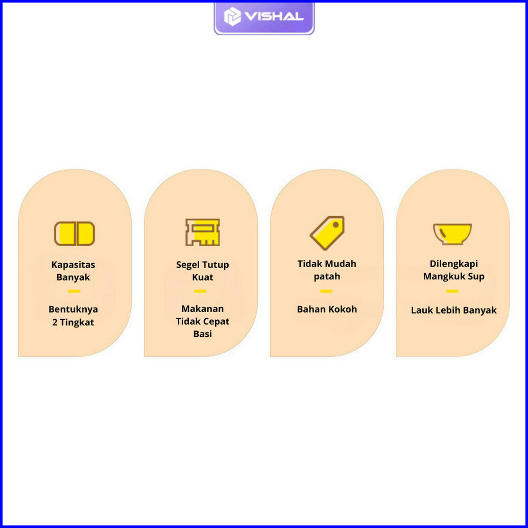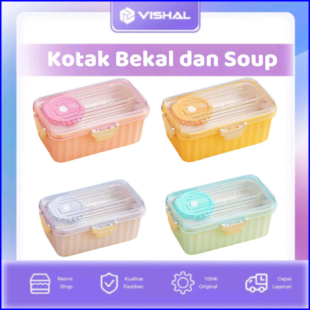 Vishal Lunch Box Soup Persegi Panjang 2 Tingkat Kapasitas 2.05l - Kotak Bekal Tempat Makan Warna Pastel Kotak Makan 2 Ti