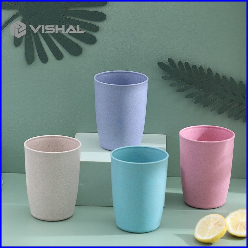 Vishal Gelas Wheat Straw Set Cangkir Plastik Warna 4 In 1 Cups Wheat Cup Set Cangkir Susu Vs-14