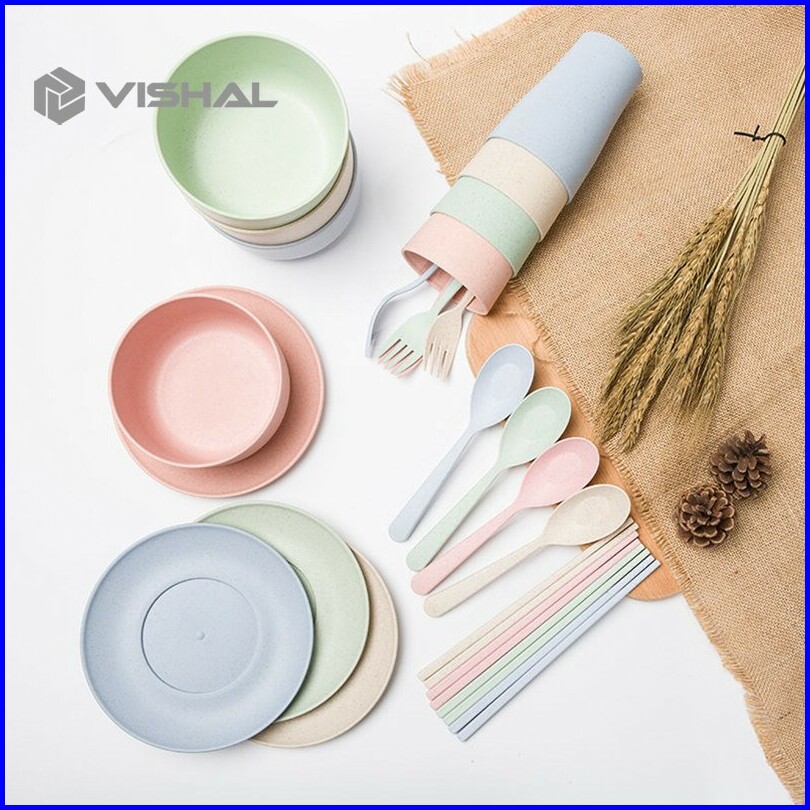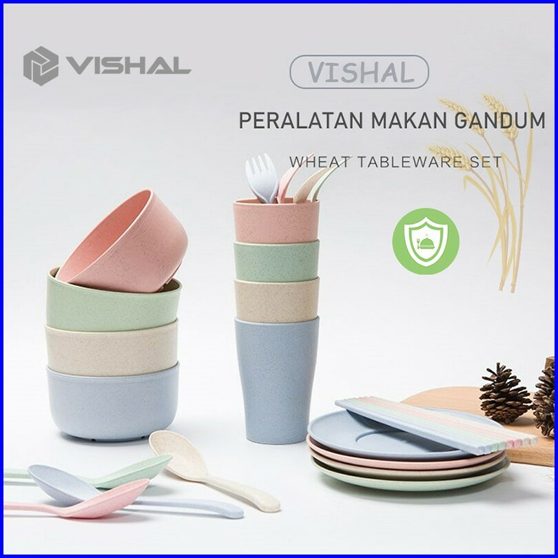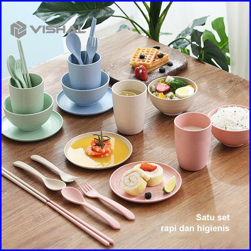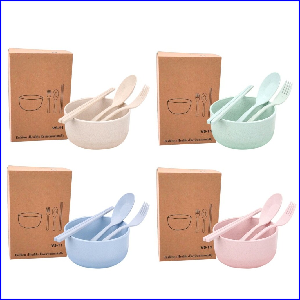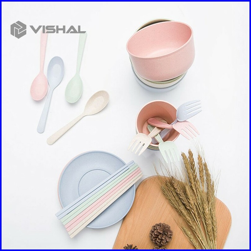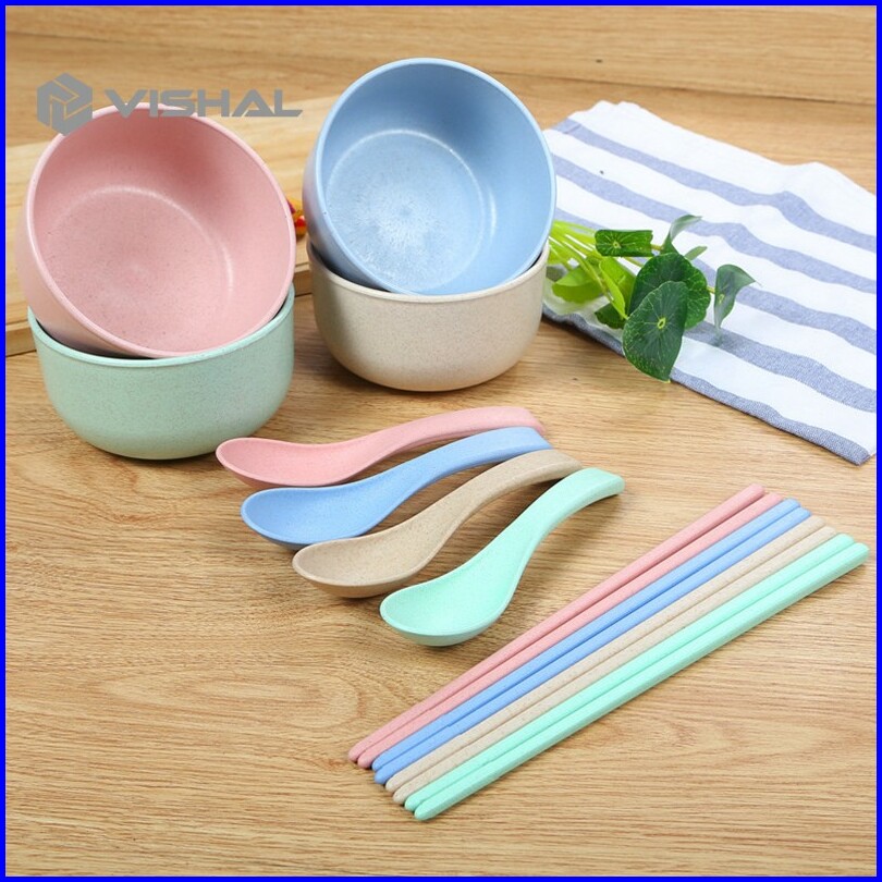 Vishal 4pcs Peralatan Makan Rumah Kreatif Jerami Gandum Mangkuk Plastik Anti-drop Gaya Jepang Vs-11