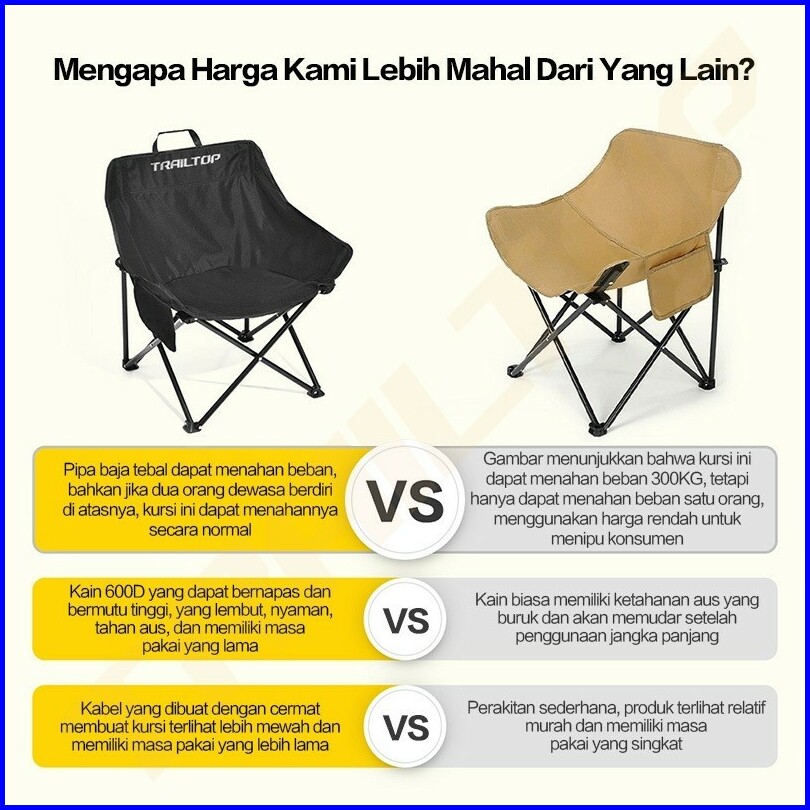 Trailtop Kursi Lipat Outdoor Kursi Camping Bulat Balutannya Lebih Kuat Dan Lebar 63cm
