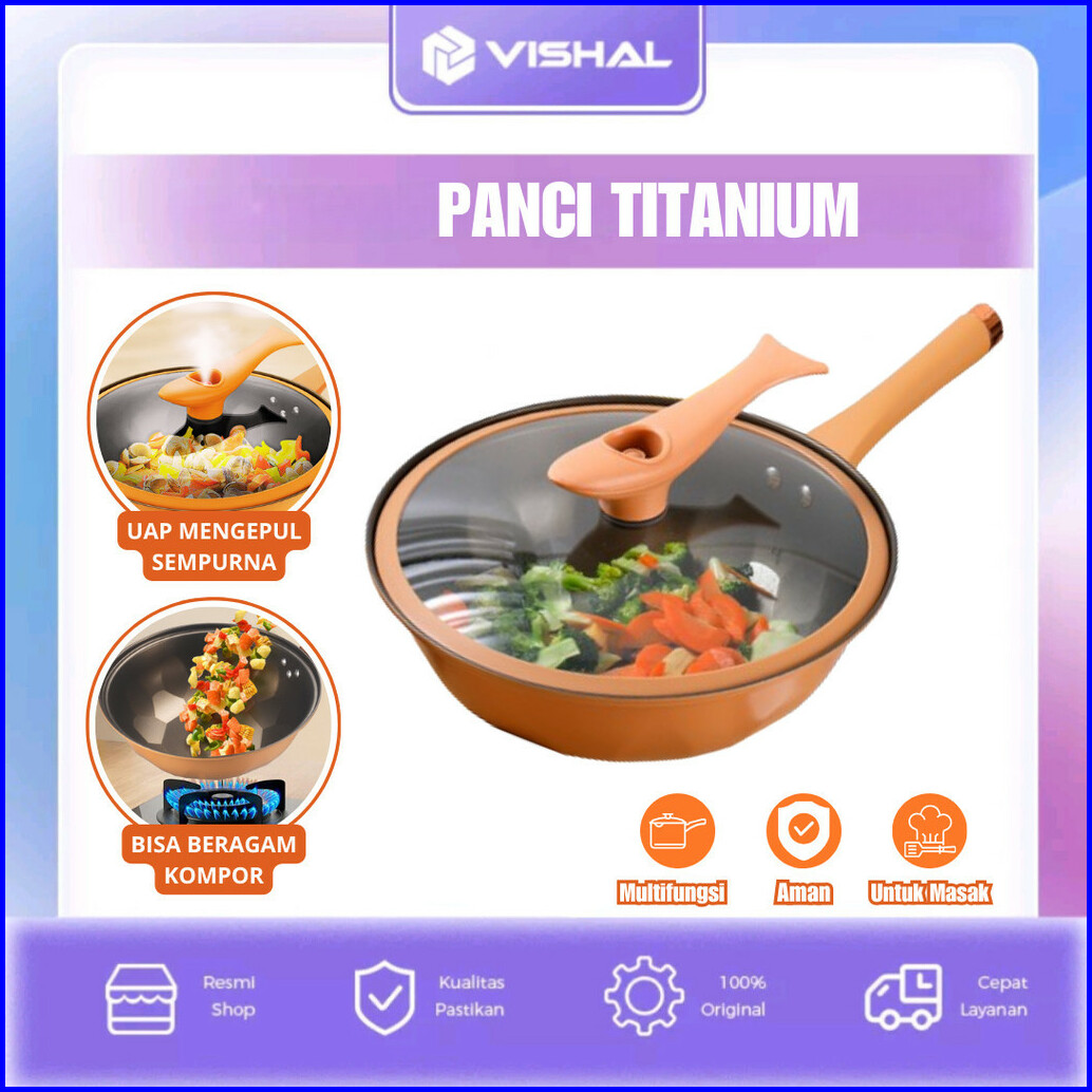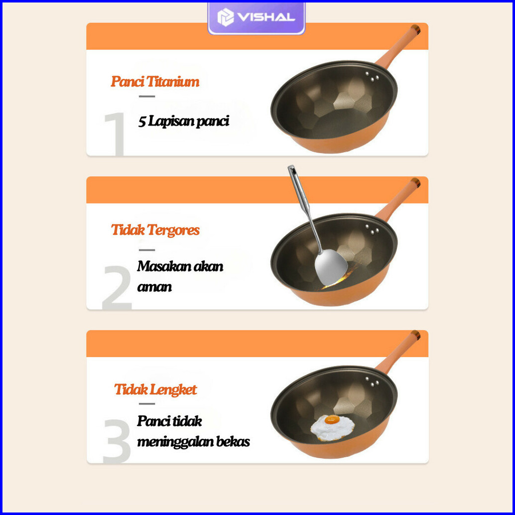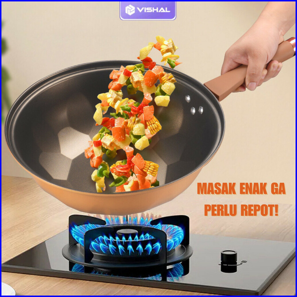 Vishal Wajan Teflon Paus Anti Lengket Double Bottom Cook Clean Wok Pan Teflon Titanium 32cm Vs-1871