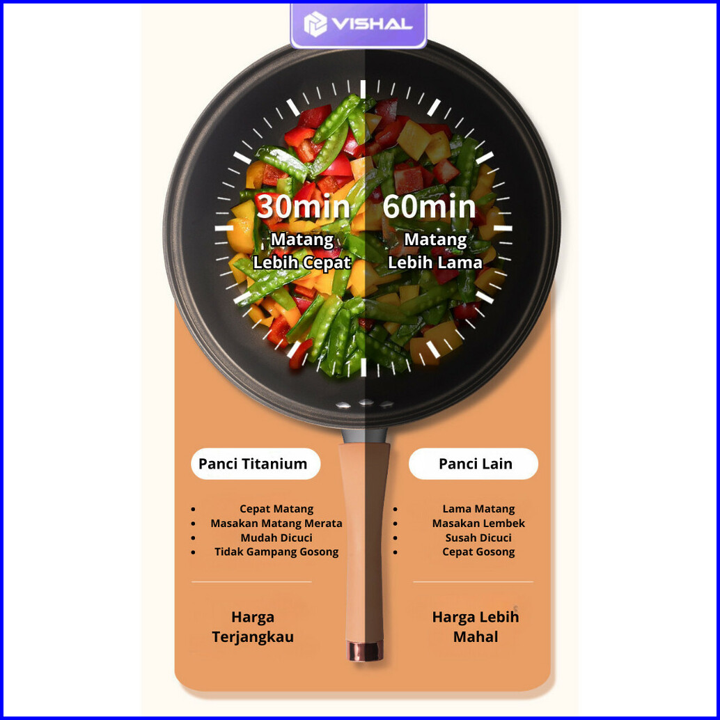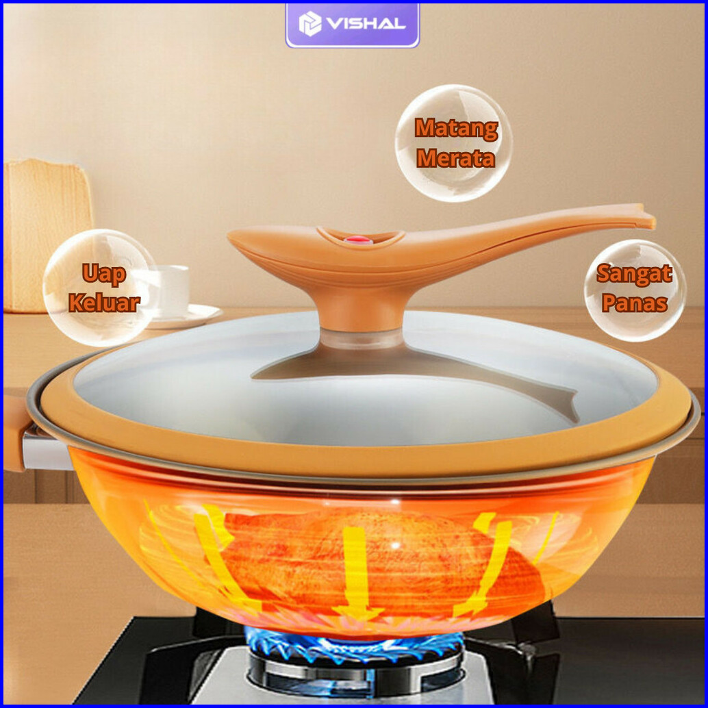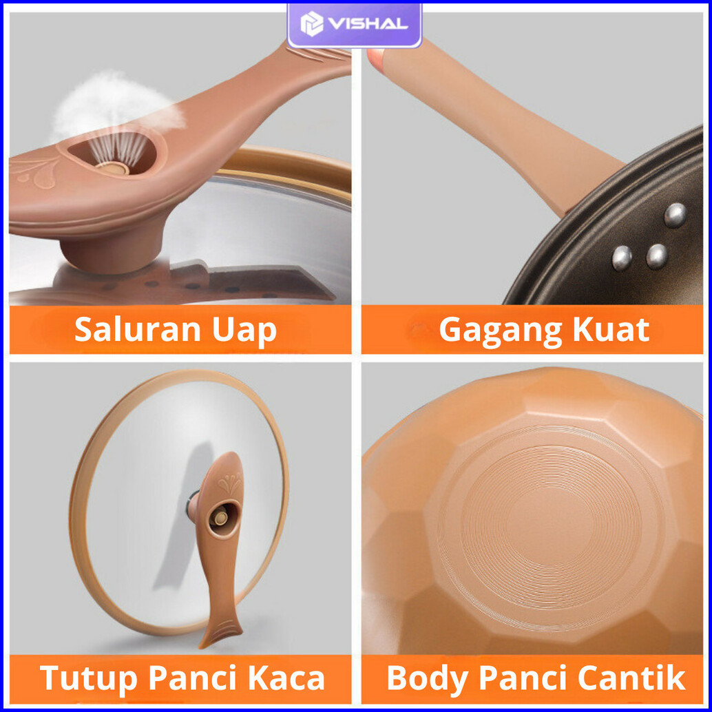 Vishal Wajan Teflon Paus Anti Lengket Double Bottom Cook Clean Wok Pan Teflon Titanium 32cm Vs-1871