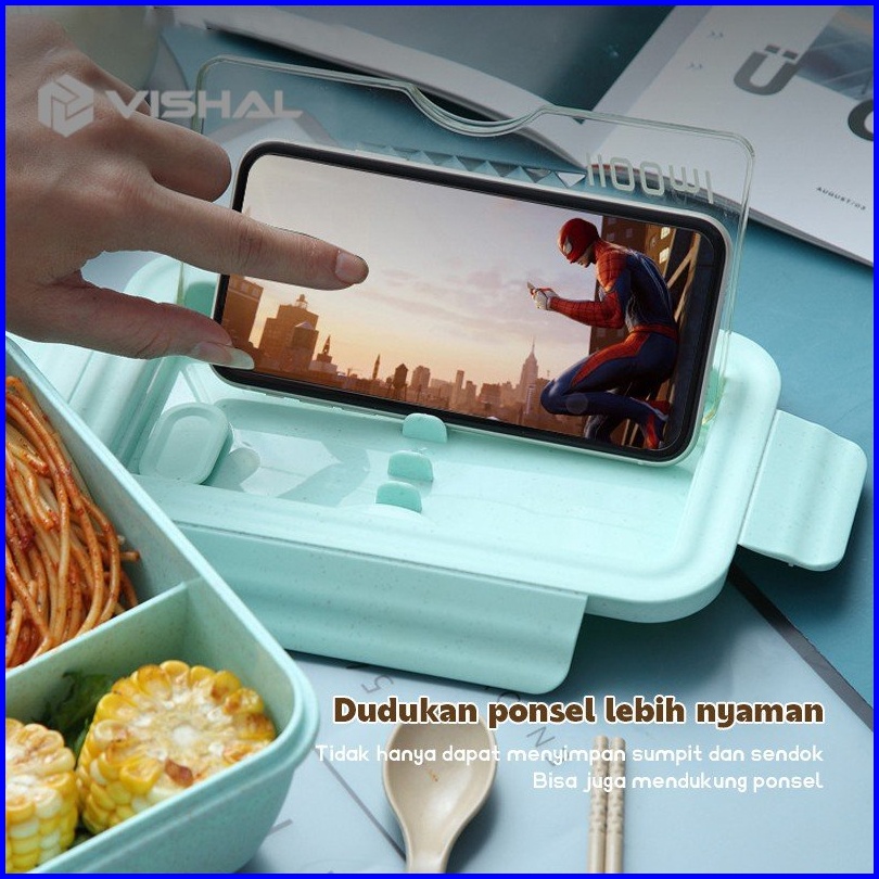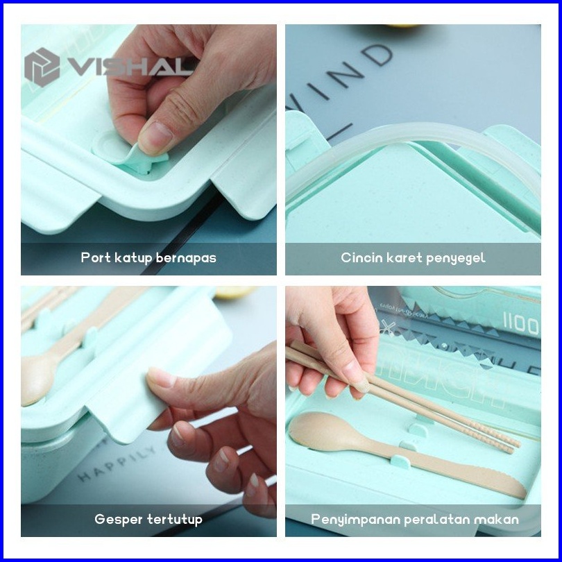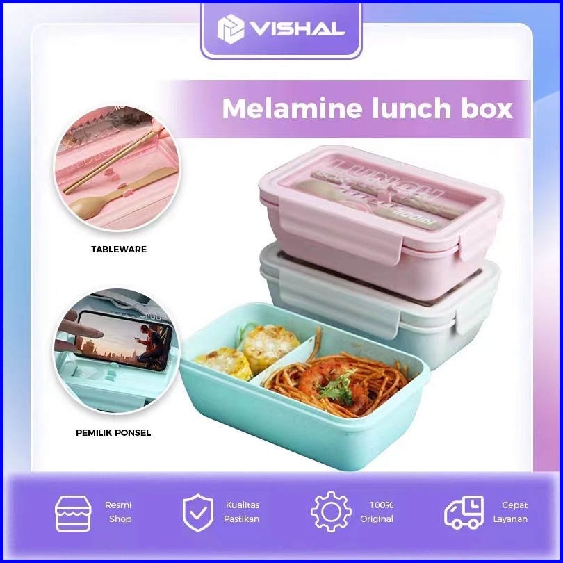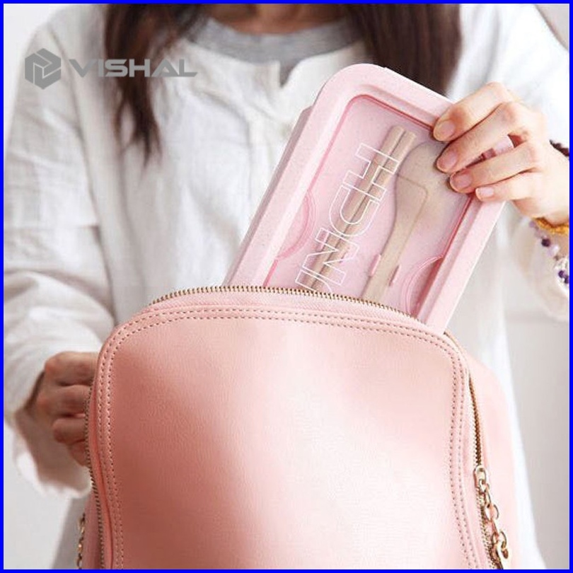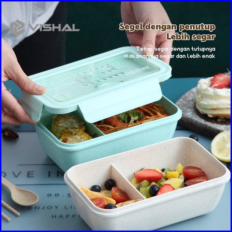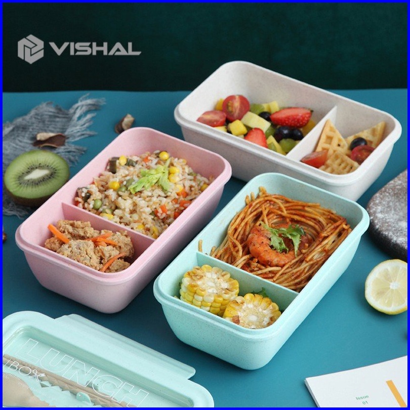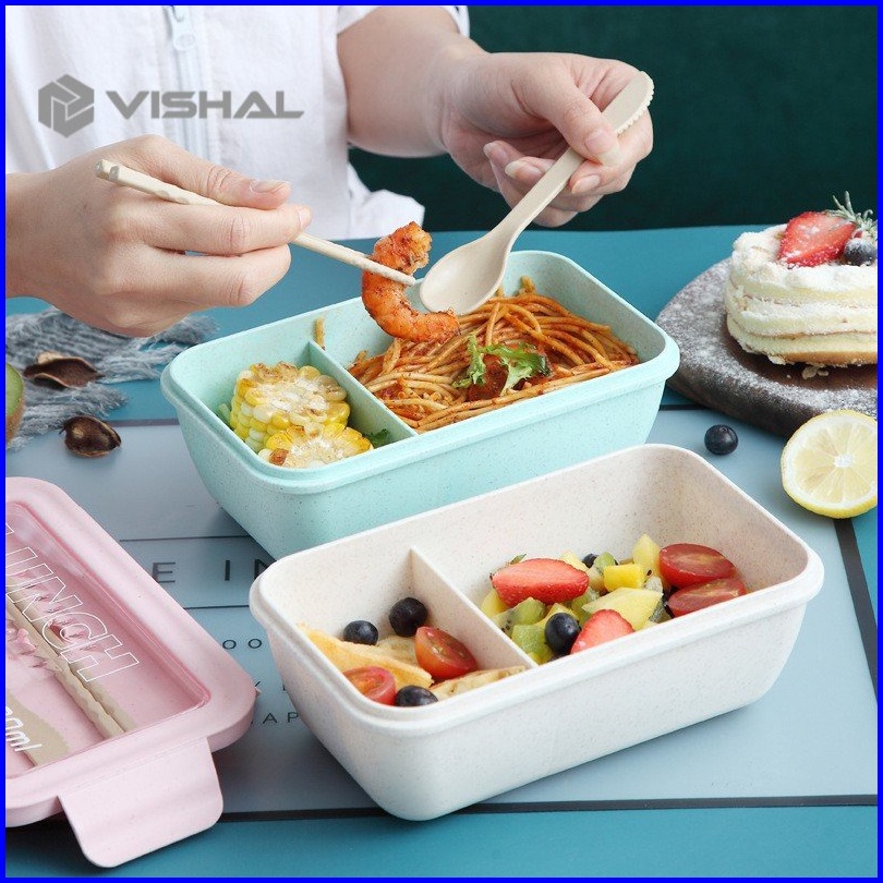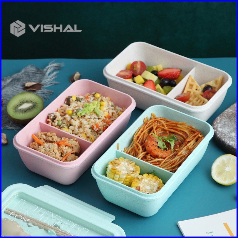 Vishal Lunch Box Set Jerami Gandum Kotak Bekal Makan Kotak Makan 1000 Ml Lunch Box With Free Sendok Bpa Vs-36
