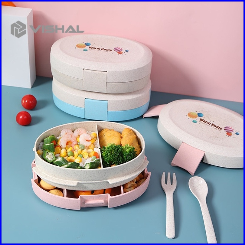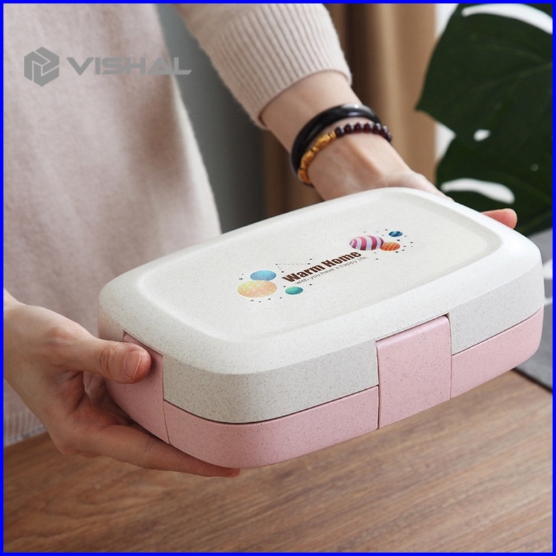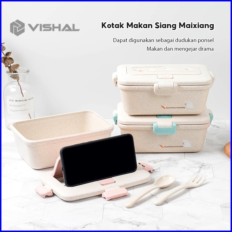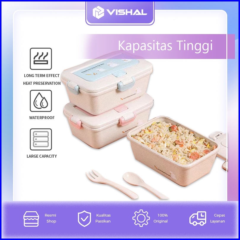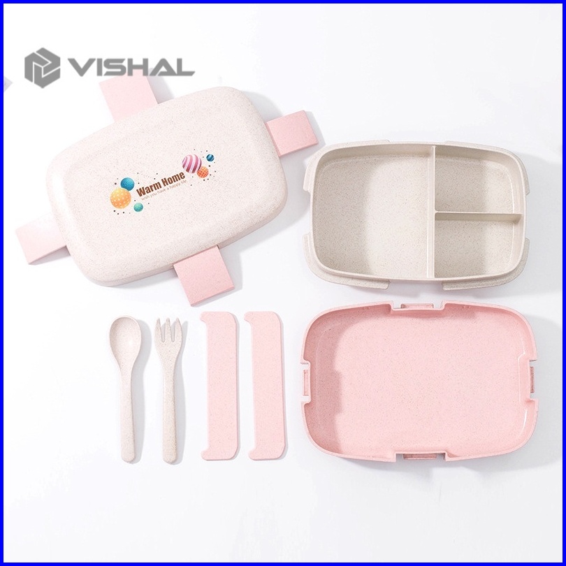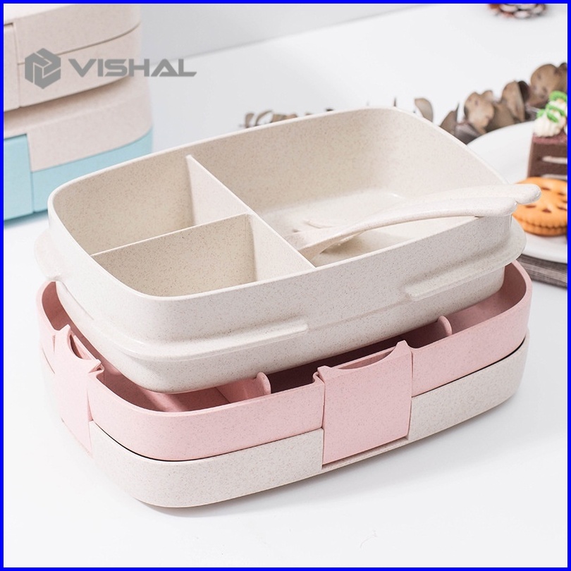 Vishal Lunch Box Set Kotak Bekal Makan Jerami Gandum Kotak Makan 3 In 1 Free Sendok Tempat Makan Anti Tumpah Bpa Free Vs