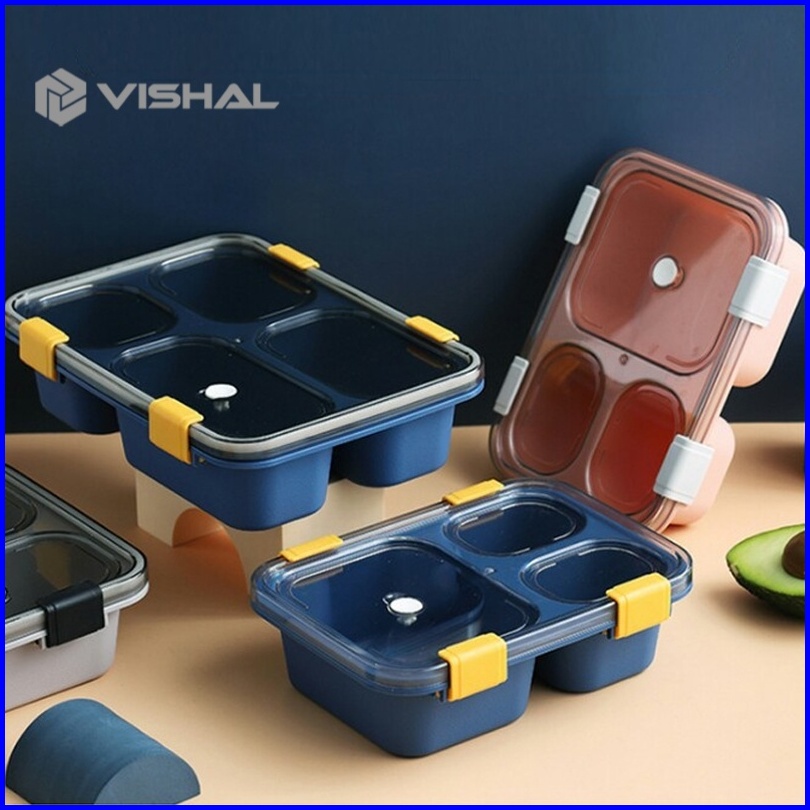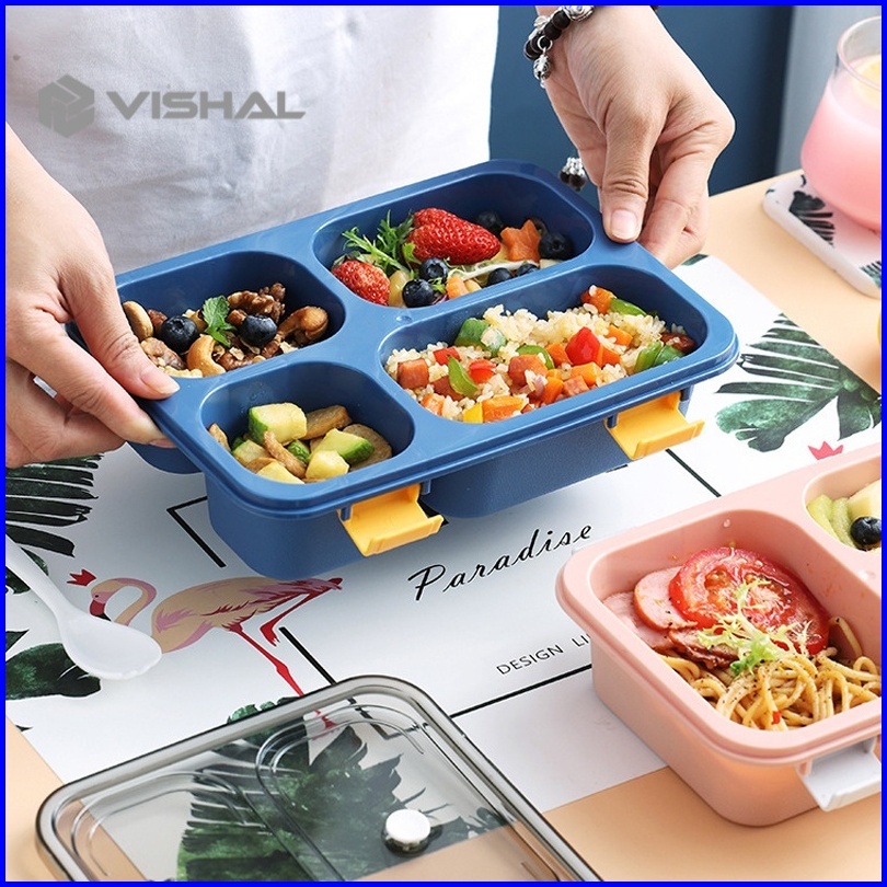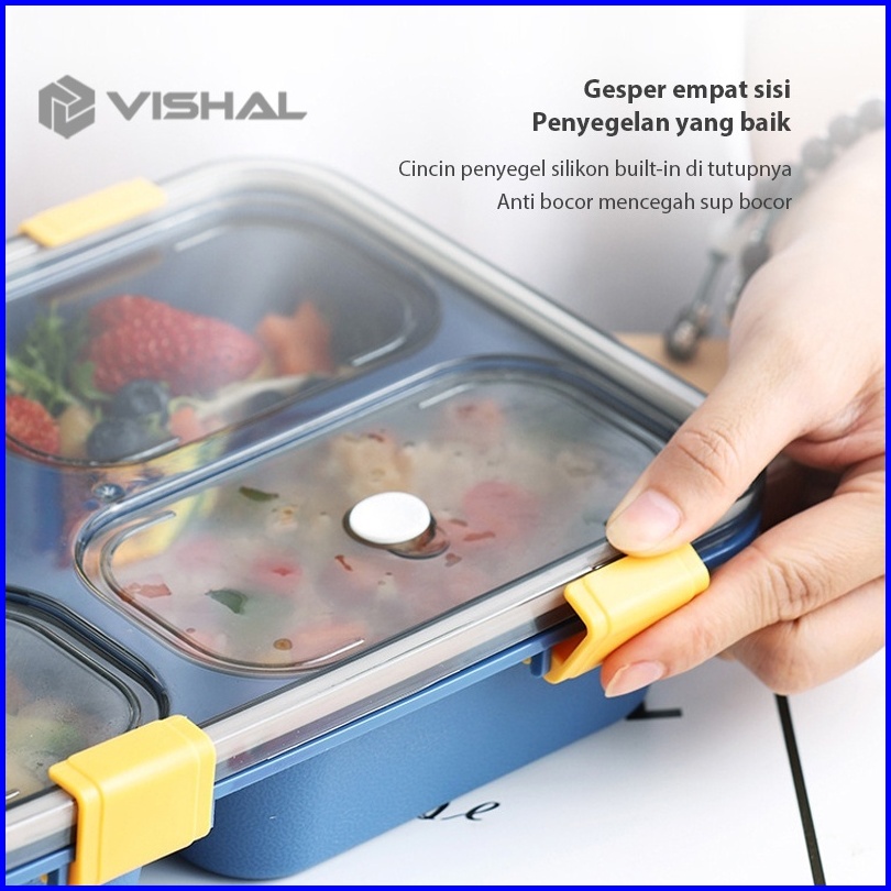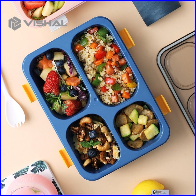 Vishal Kotak Bento 4 Sekat Lunch Box Kotak Makan Bekal Serbaguna Japanese Lunch Box Microwave Oven 3 Sekat Kotak Makan V