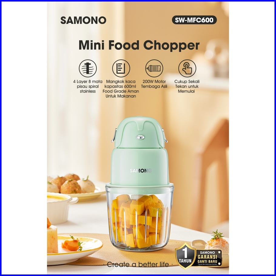 Samono Food Chopper 600ml Mpasi Food Grade Mesin Penghalus Daging Serbaguna Mfc600 Garansi 1 Tahun