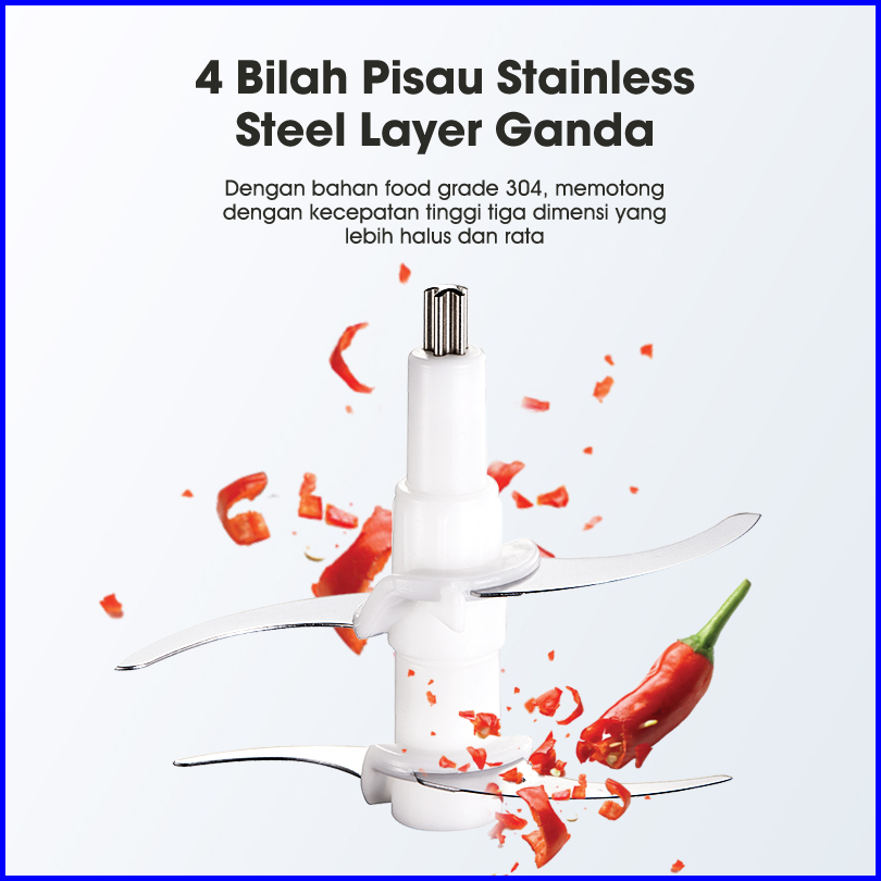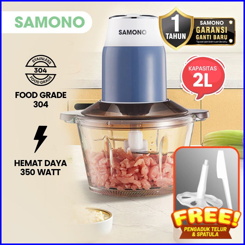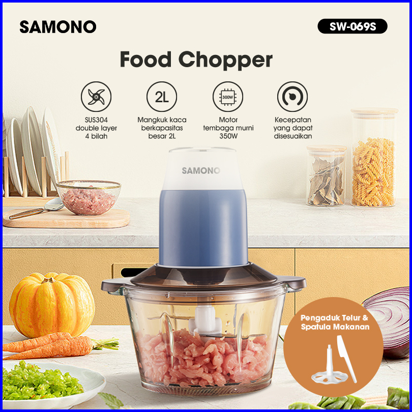 Samono Chopper Makanan 350 Watt 4 Pisau Mangkok Kaca Penggiling Daging Food Grade Sw-069s