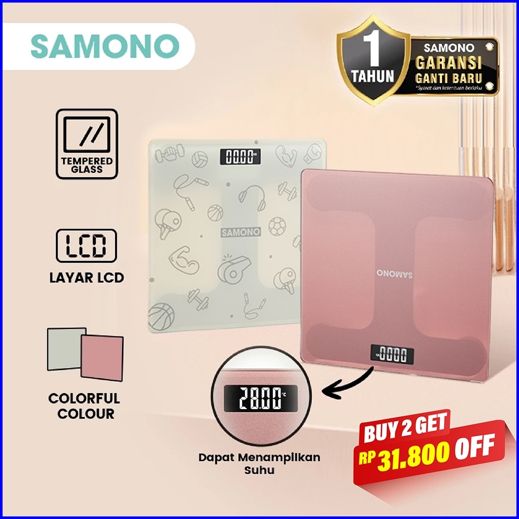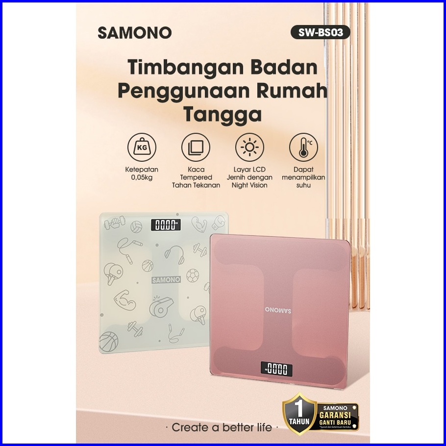Samono Timbangan Badan Digital Tempereed Glass Penampil Suhu Otomatis Sw-bs03 Garansi Ganti Baru