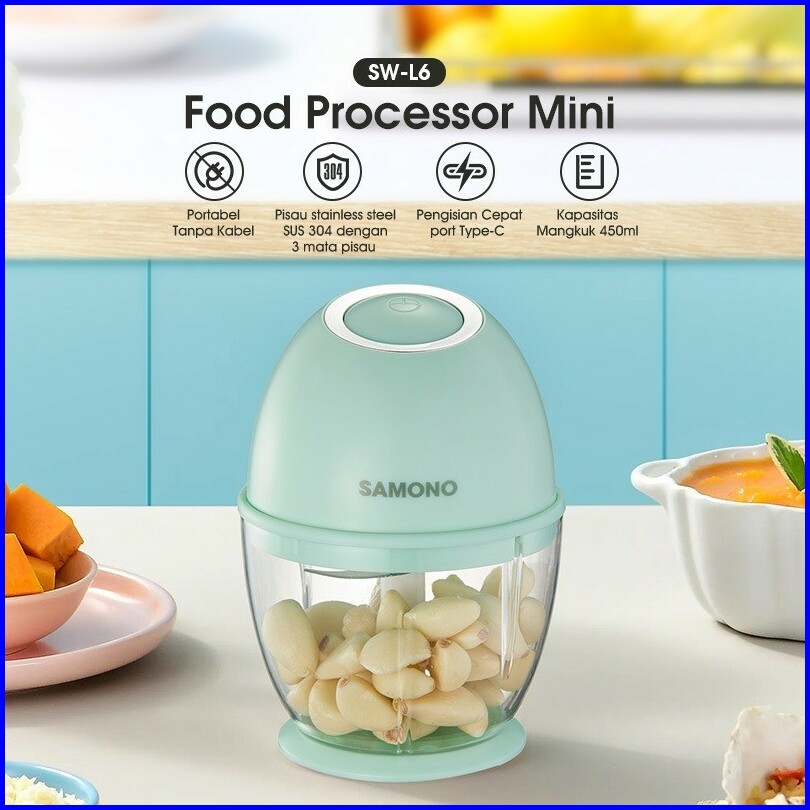 Samono Chopper Bumbu Portable Penghalus Bumbu Daging Makanan Kapasitas 450ml Garansi Ganti Baru 1 Tahun Sw-l6