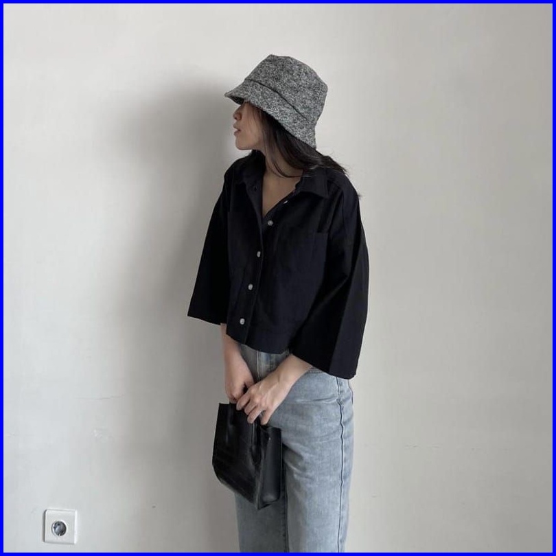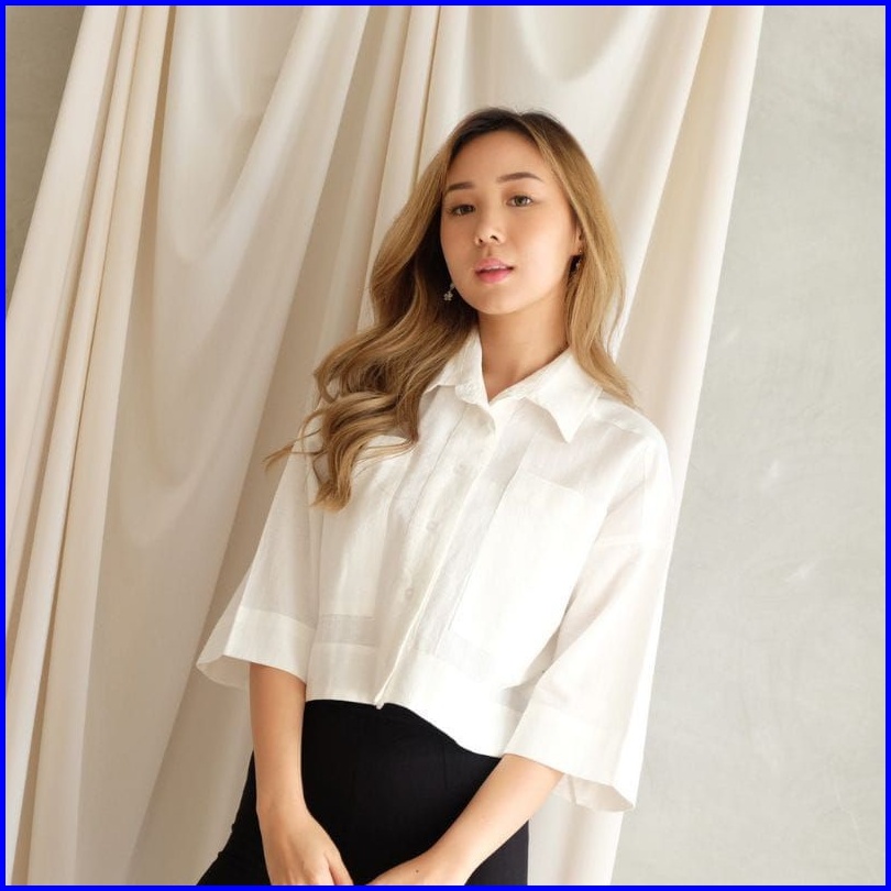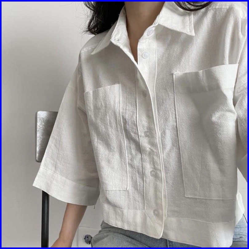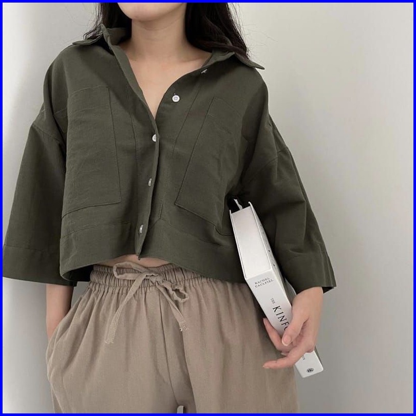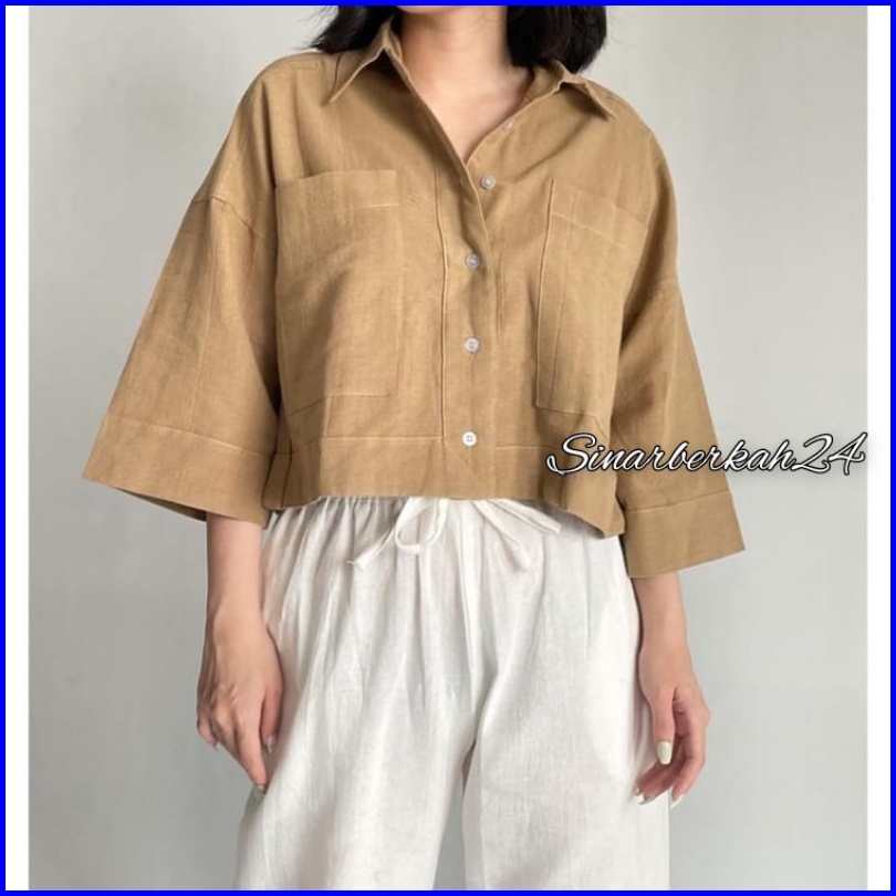 Kemeja Crop Linen Pocket Kemeja Outer Crop Linen Oversized Shirt Linen Atasan Wanita Outer Wanita