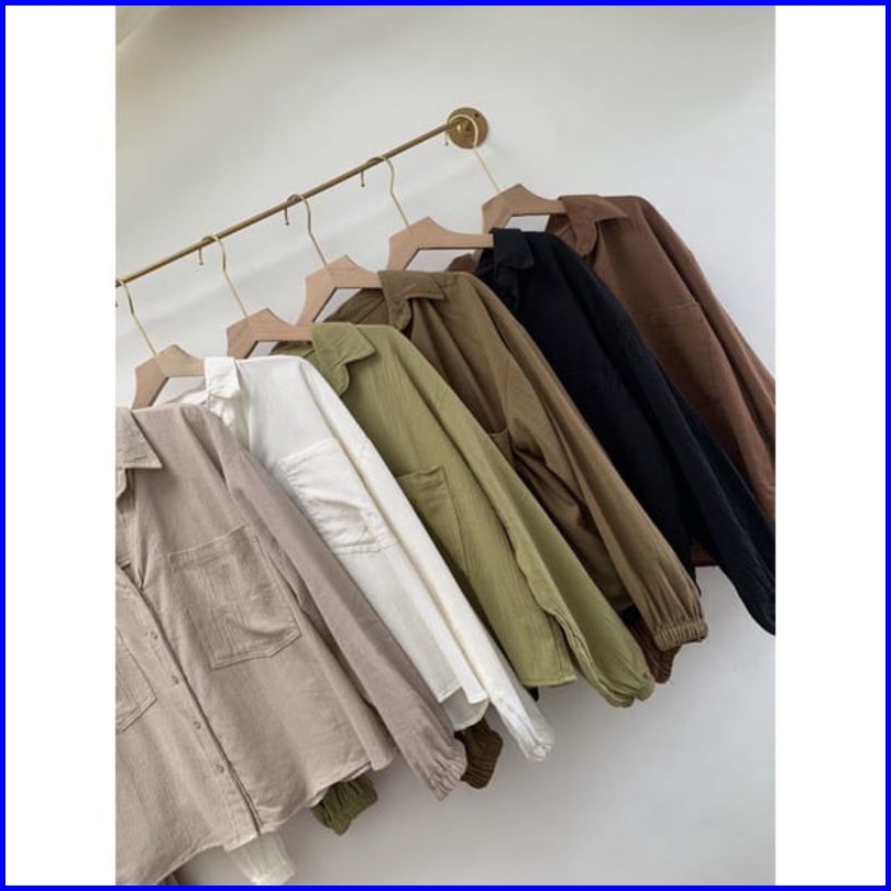 Zaloora Crop Shirt Linen - Kemeja Crop 2 Pocket - Oversized Shirt Linen - Atasan Wanita