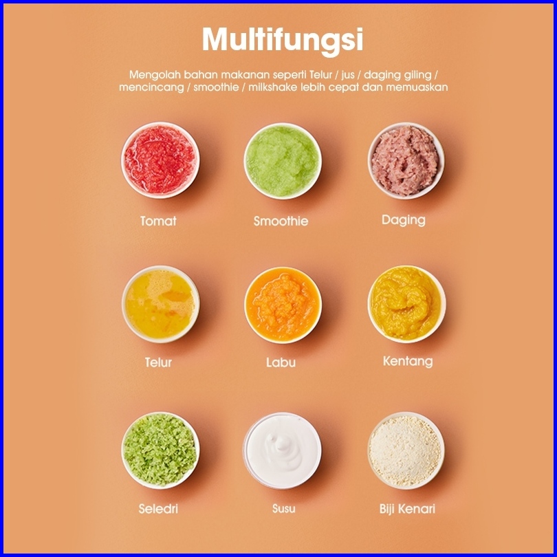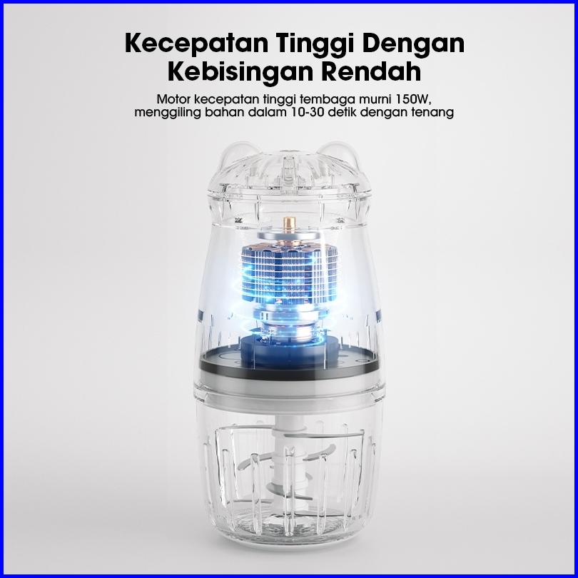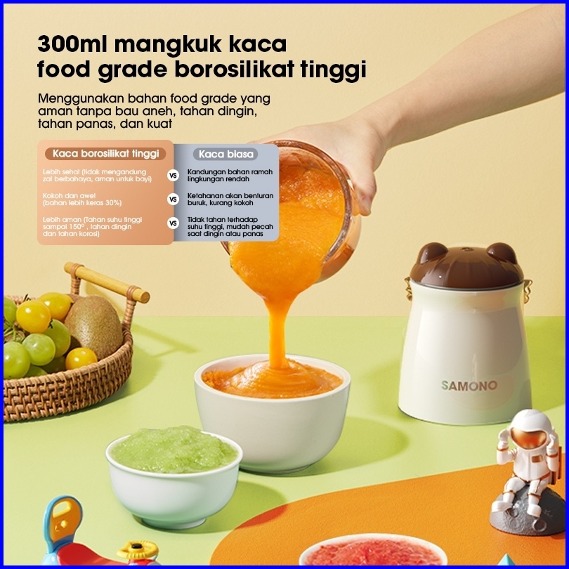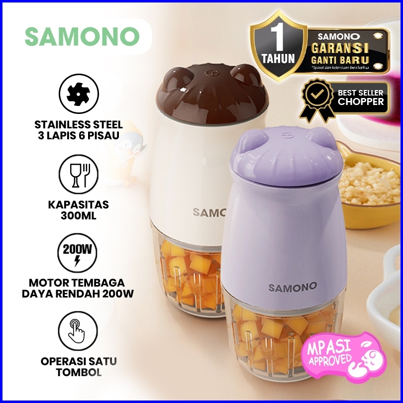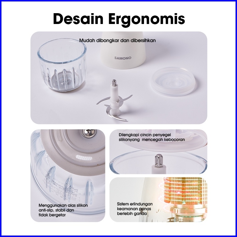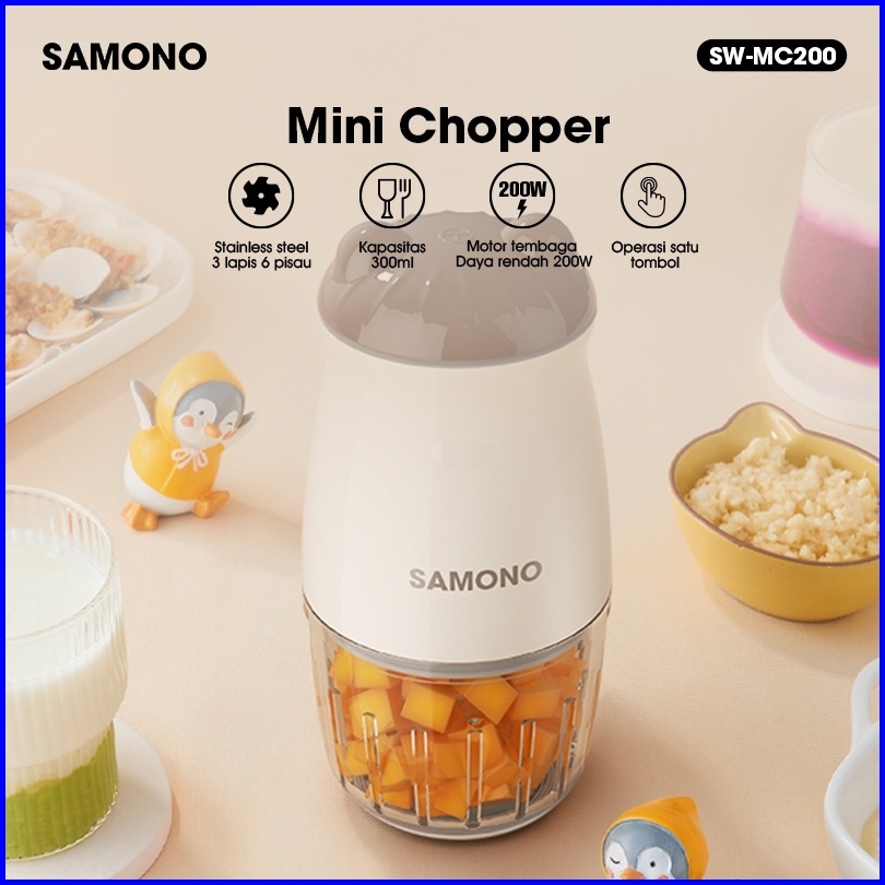 Samono Mini Chopper Penggiling Daging Buah Penghalus Mpasi Sw-mc200 Wadah Kaca Tebal Food Grade 300ml Daya 200 Watt Gara