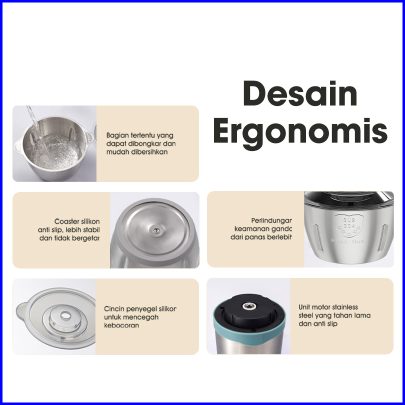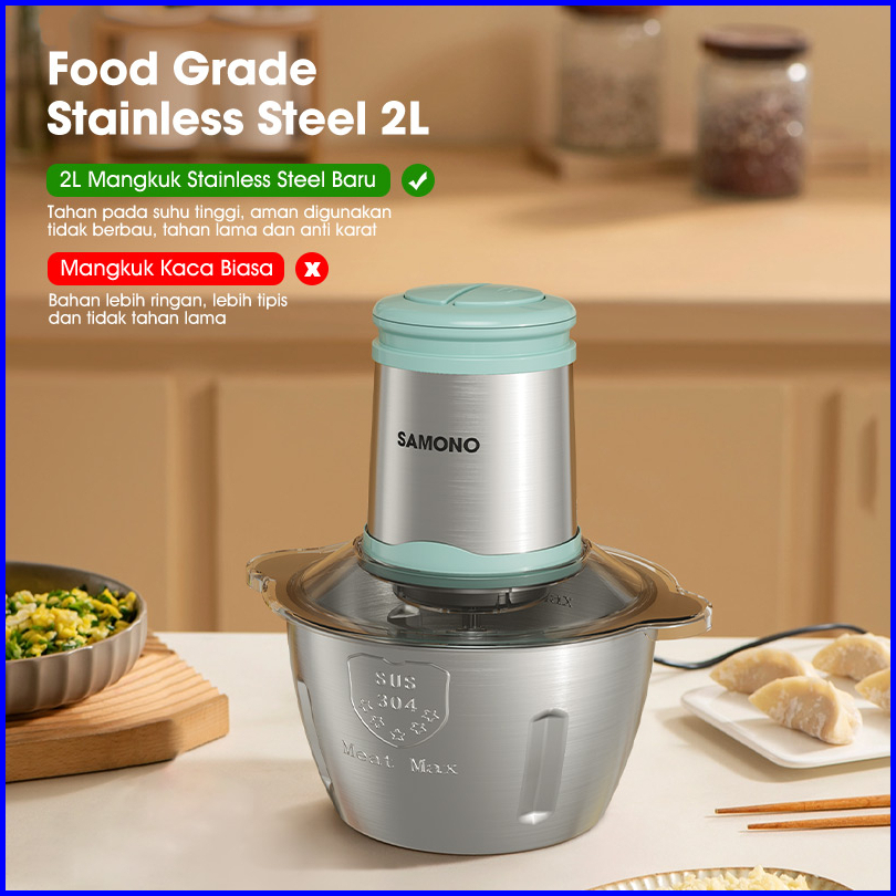 Samono Chopper Daging Stainless Hemat Daya 4 Mata Pisau 2liter Food Grade Garansi 1 Tahun Sw-cl350