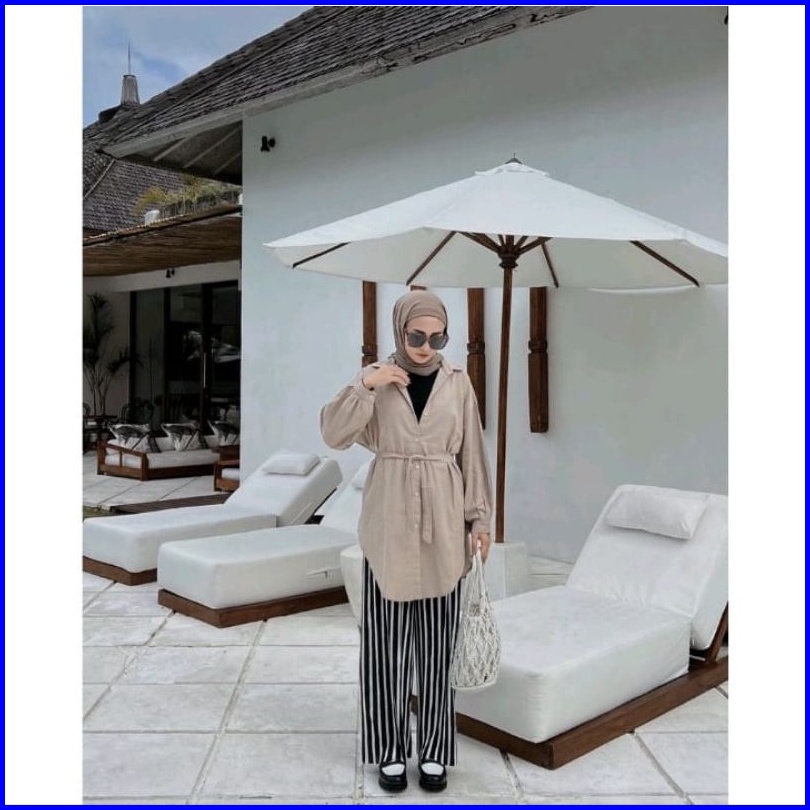 Malka Shirt - Kemeja Oversize Wanita - Oversized Shirt Linen - Atasan Tali Linen