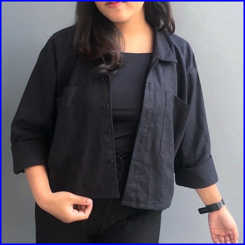 Kemeja Gita Rami Croptop Shirt Outer Oversized Shirt Linen Kemeja Wanita Atasan Wanita
