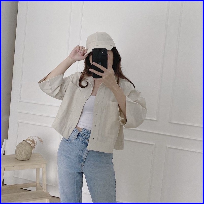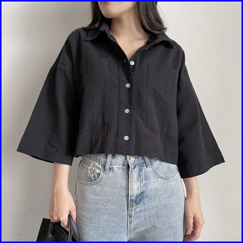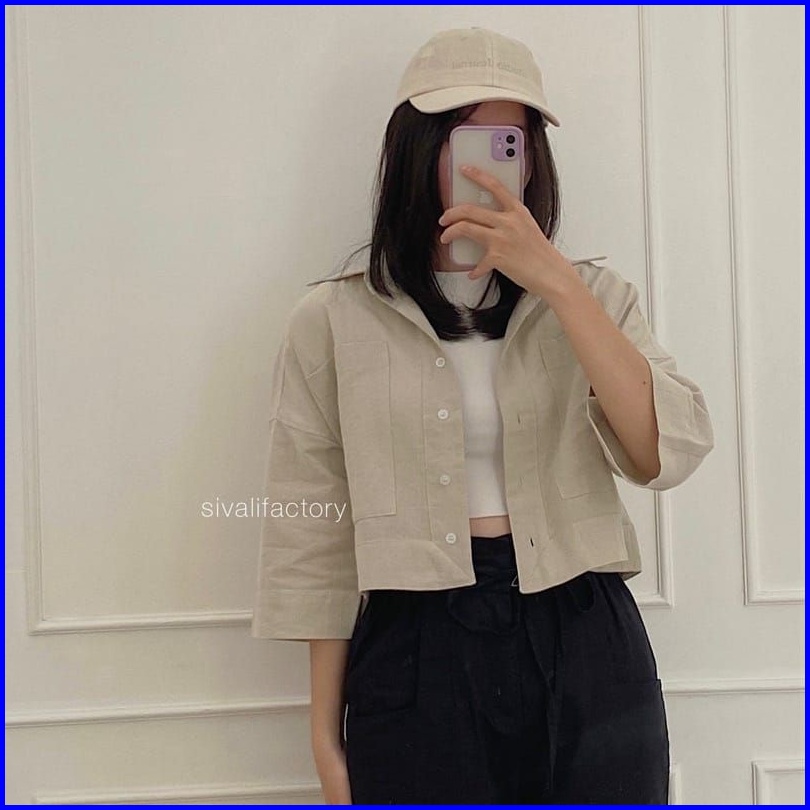 Kemeja Wanita Linen Croptop Shirt Outer Linen Atasan Wanita