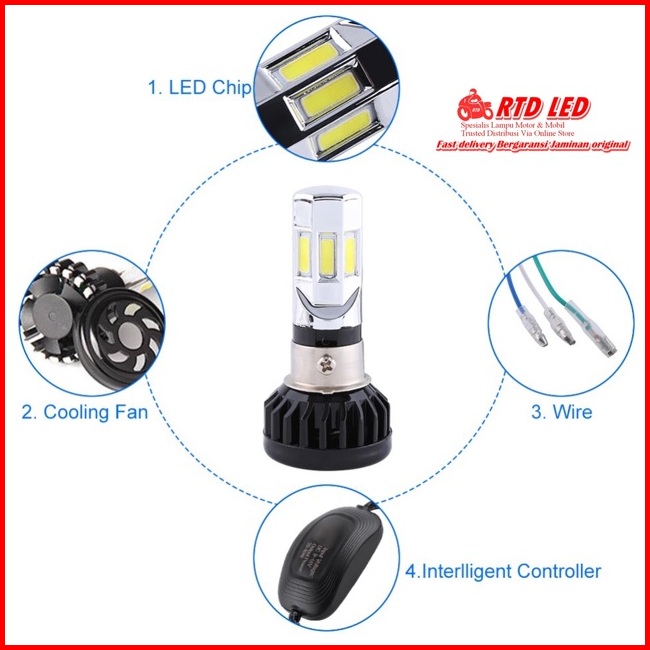 Lampu Led Motor H4 H6 6 Sisi M02e Original Bergaransi Ac Dc 35 Watt