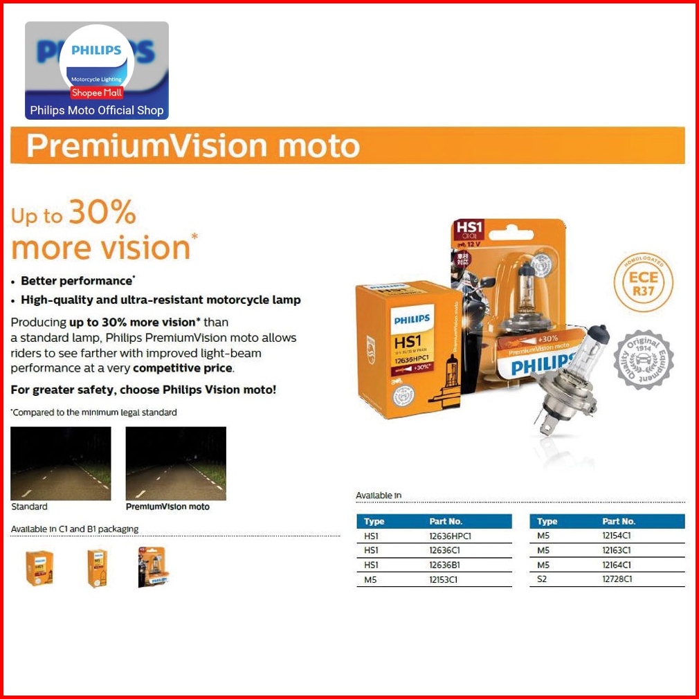 Premiumvision 35 35w Hs1 12636c1 Bola Lampu Motor Philips