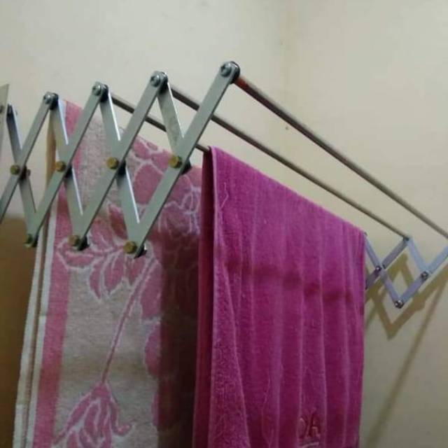 Jemuran Baju Tempel Dinding Stainless - Jemuran Pakaian Stainless Dinding Lipat - Rak Jemuran Dinding Lipat - Mes4