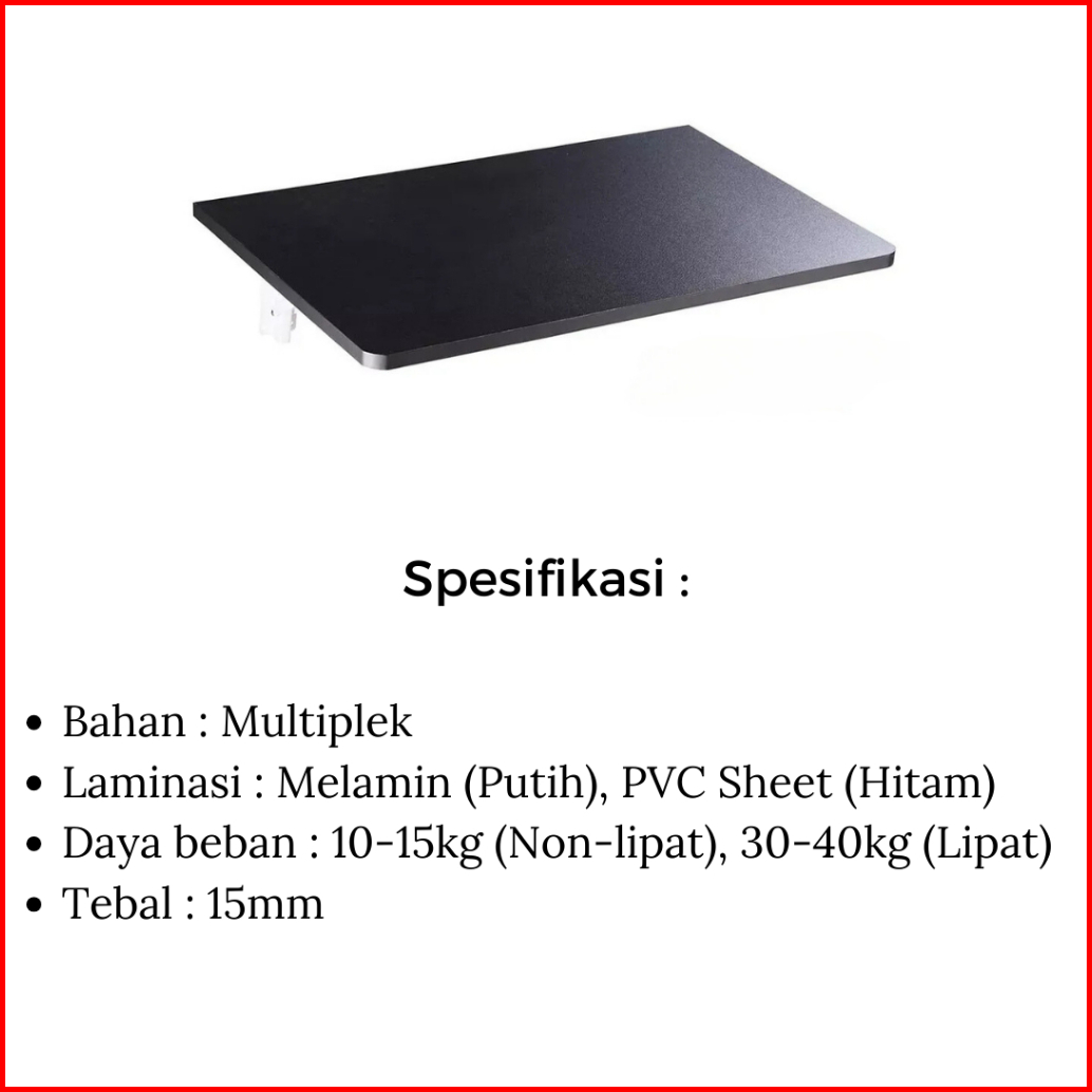 Readystock.id Meja Lipat Dinding Tanpa Bor Minimalis Serbaguna - Ukuran 120x40 100x40 80x60 80x50 80x40 60x40 60x30 60x2