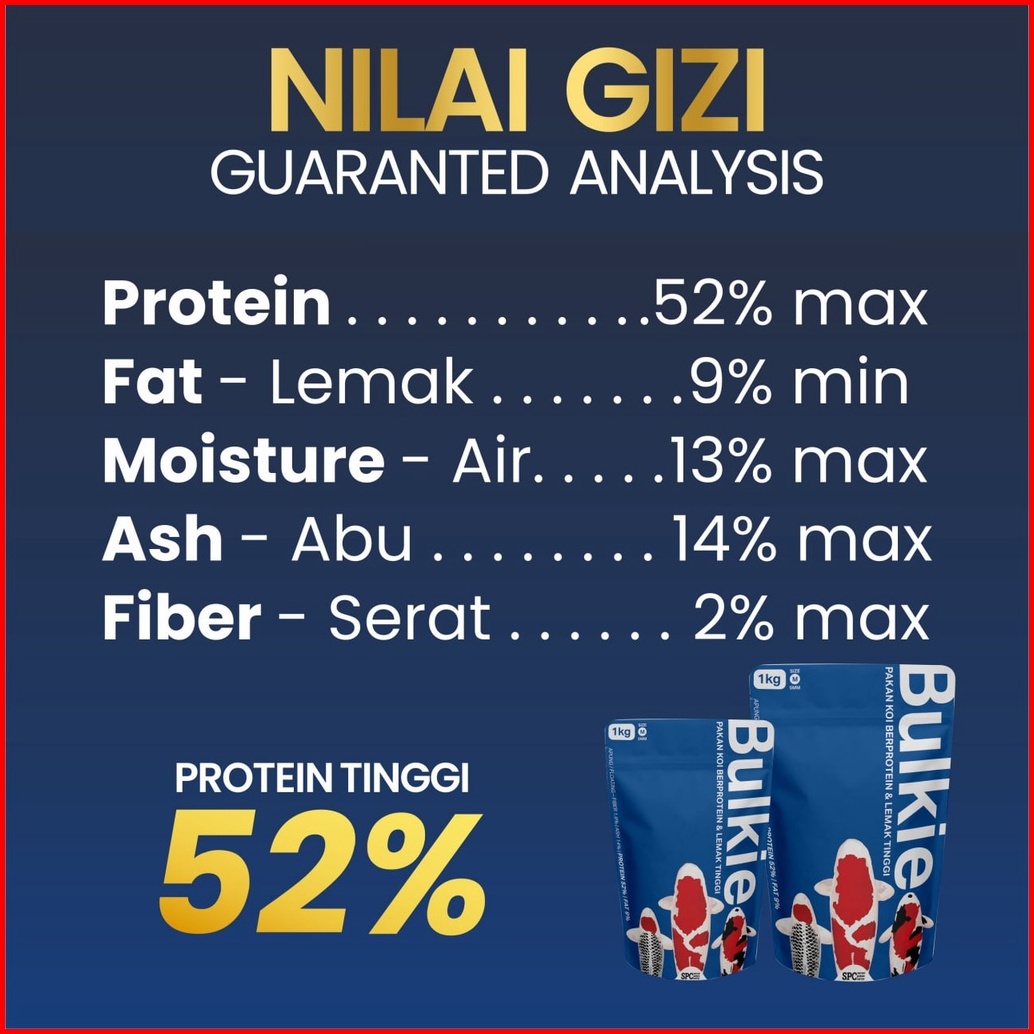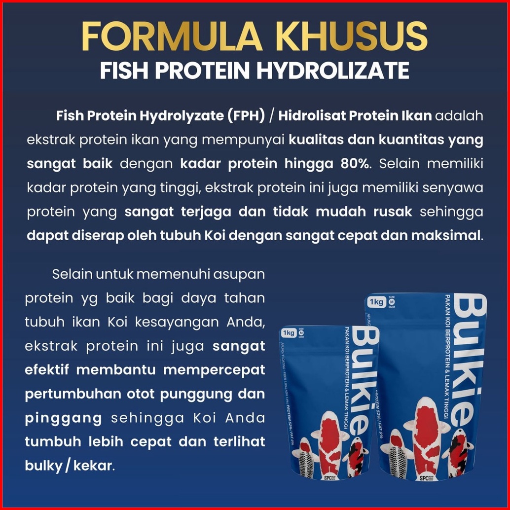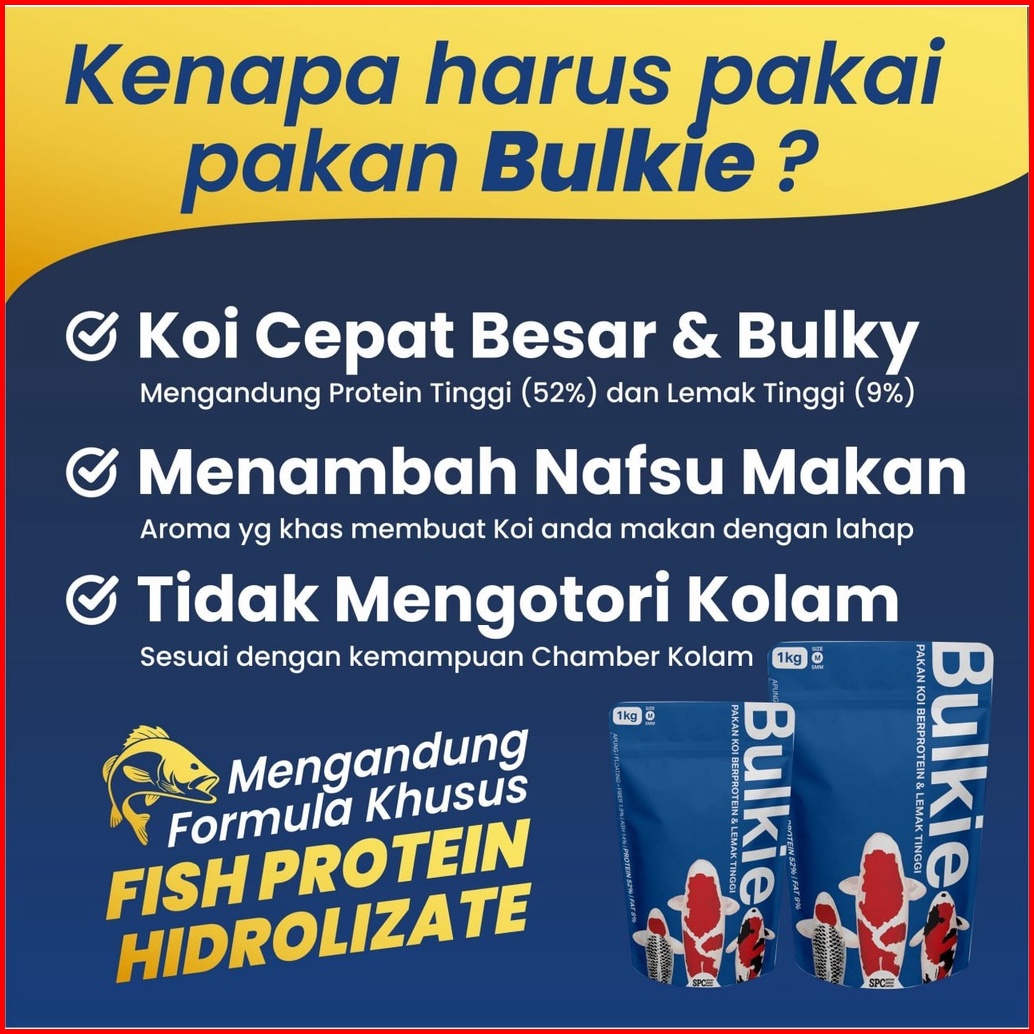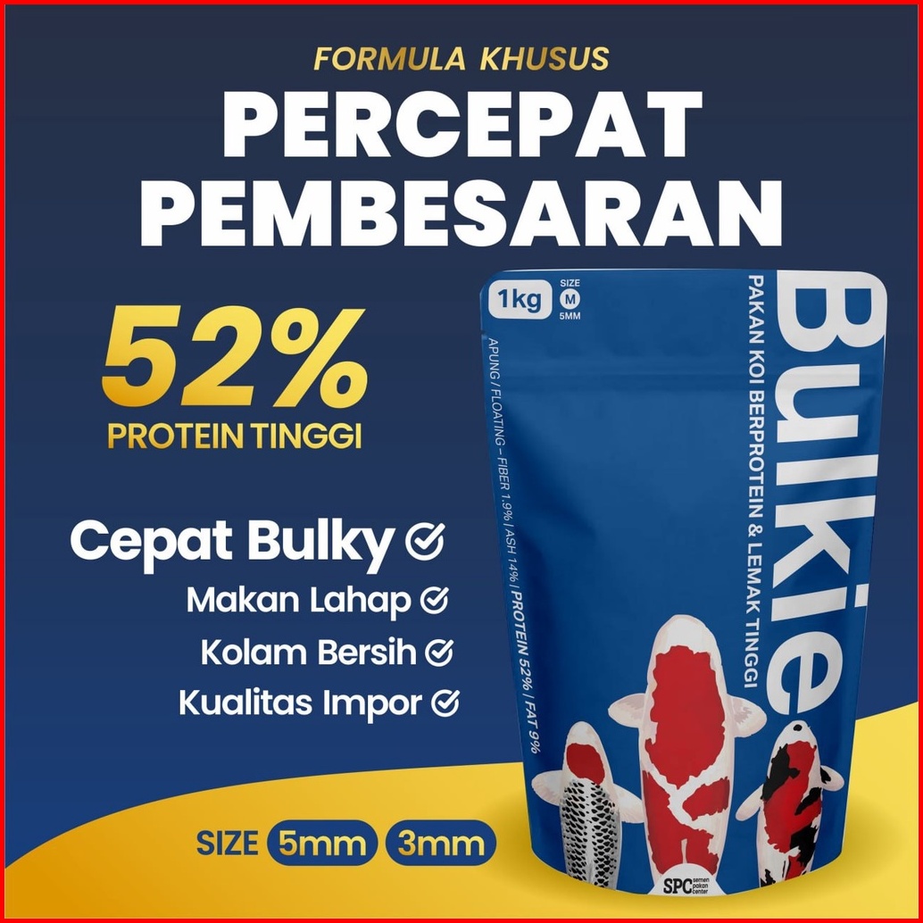 Pakan Makanan Pelet Khusus Pembesaran Ikan Koi Hi Grow Merk Bulkie 1kg 5mm