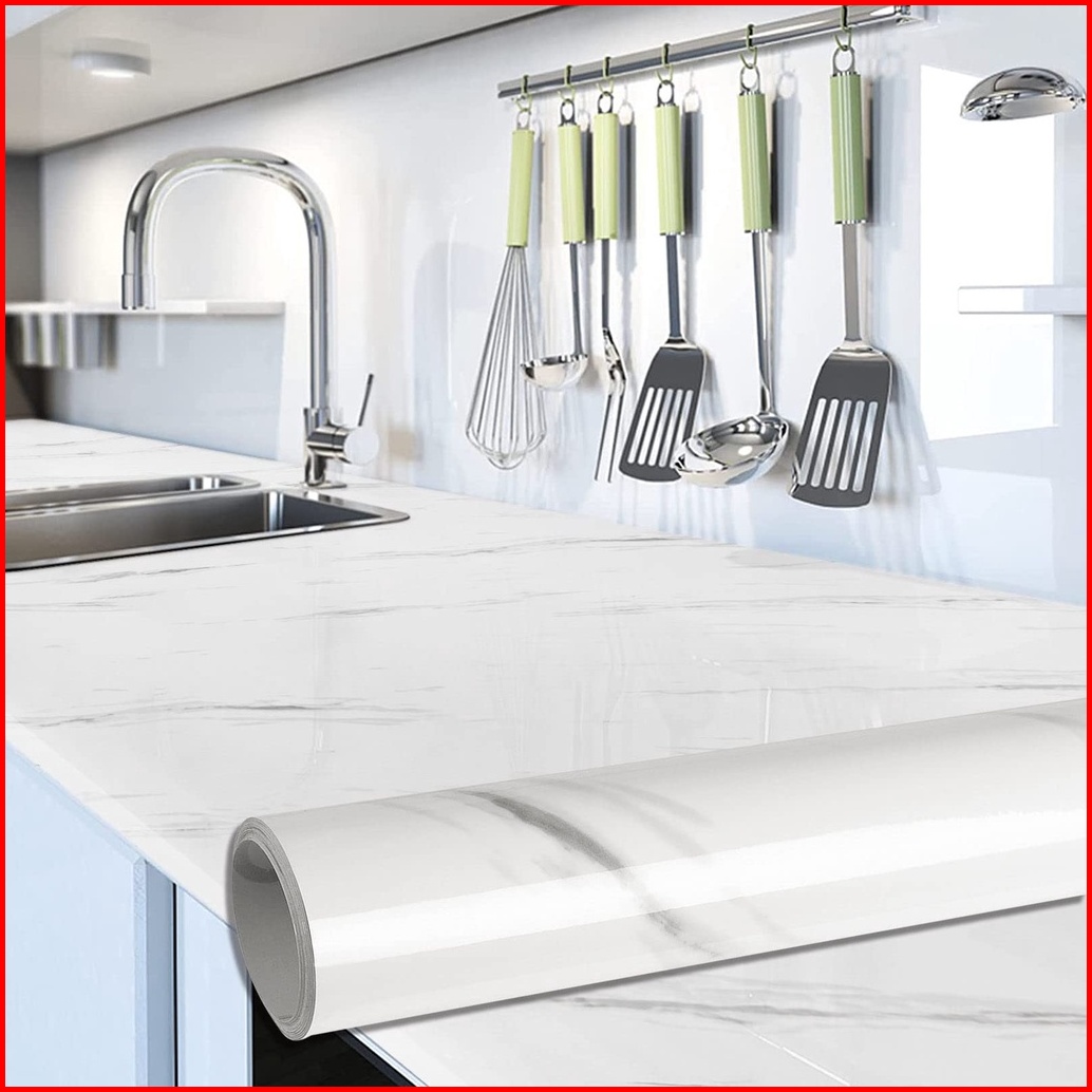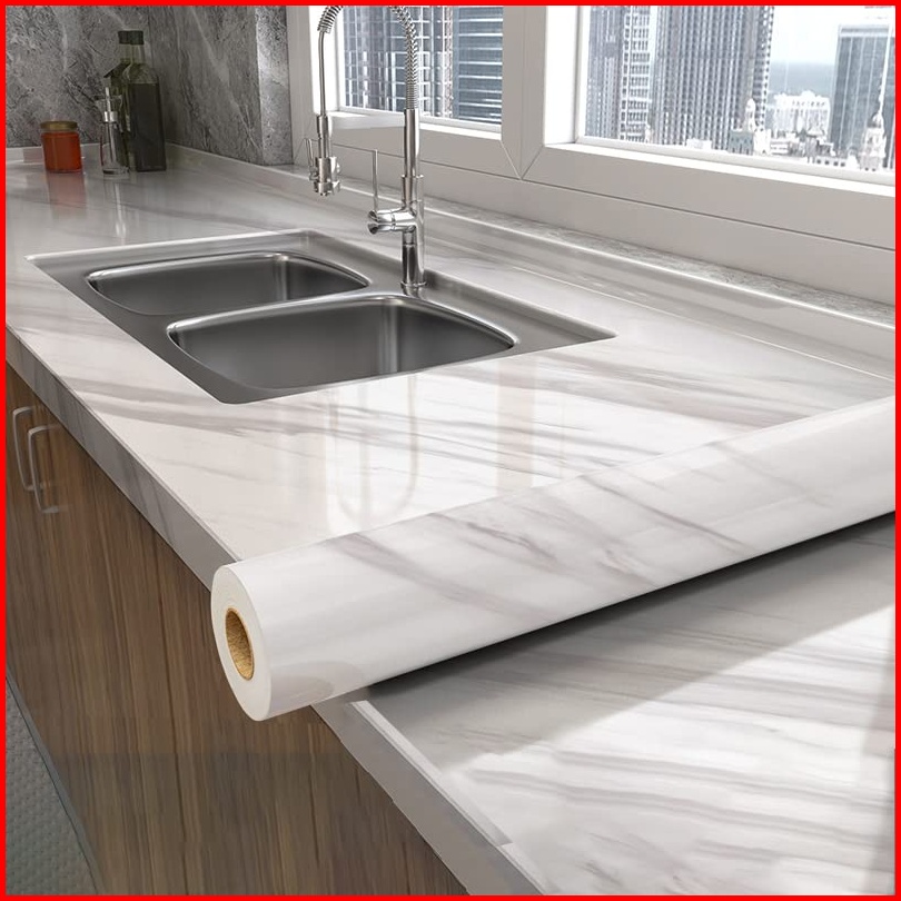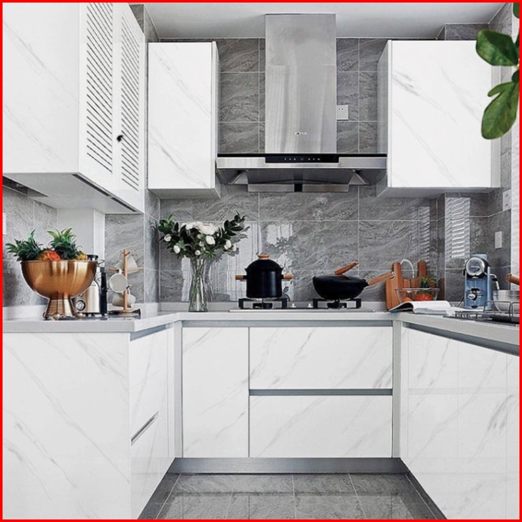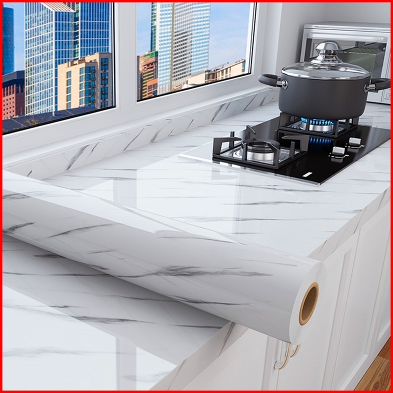 Stiker Dinding Motif Marmer Untuk Dapur Anti Air Anti Minyak Tahan Panas Ukuran 60cm 3m
