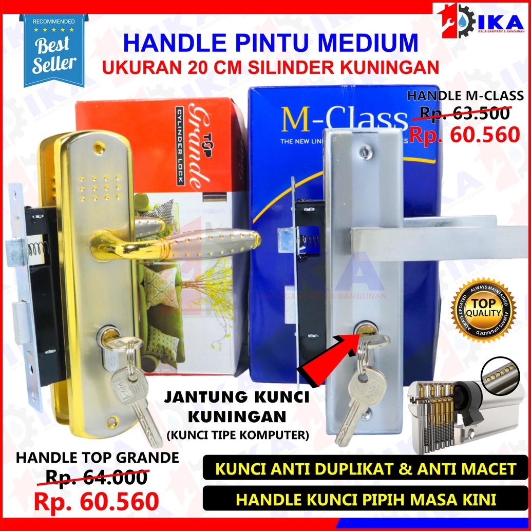 Kunci Pintu Top Grande Silinder Handle Pintu Komplit 20 Cm Medium Size Komplit Tinggal Pasang Stainles Anti Karat