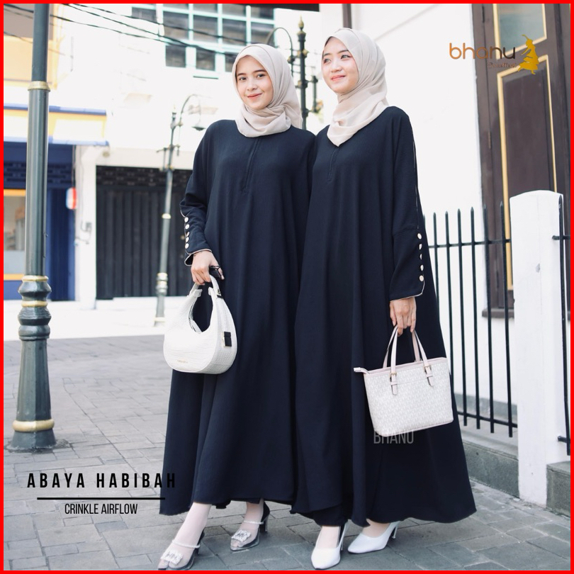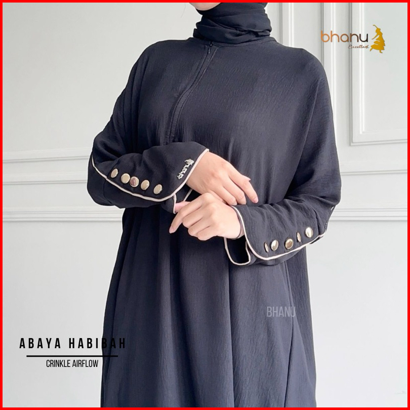 Ifabhanu - Abaya Habibah Abaya Hitam Busui Bahan Cringkle Premium By Bhanu.excellent