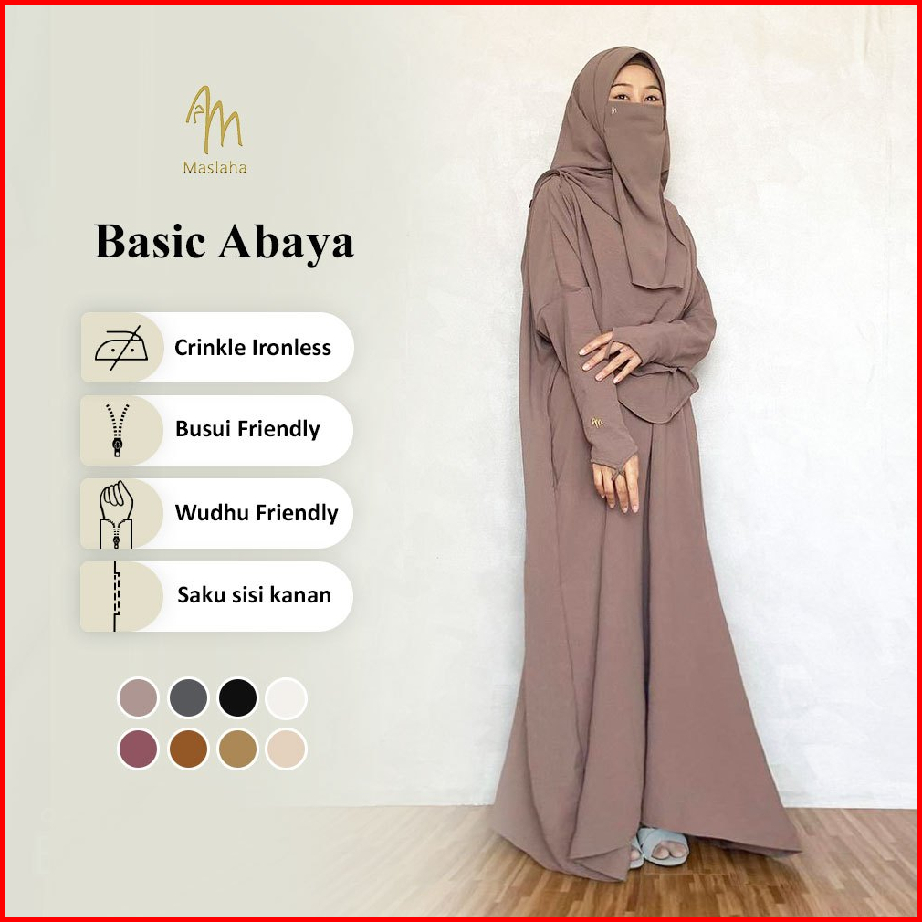Maslaha Niqab L Basic Abaya I Abaya Batwing Crinkle Polos Muslimah Gamis Umroh Dress Crinkle