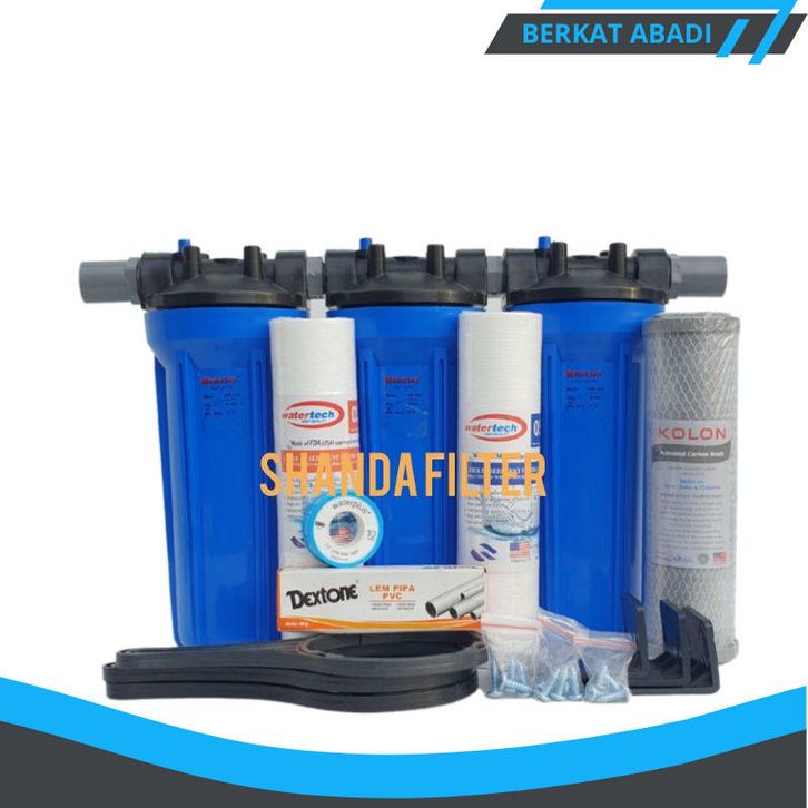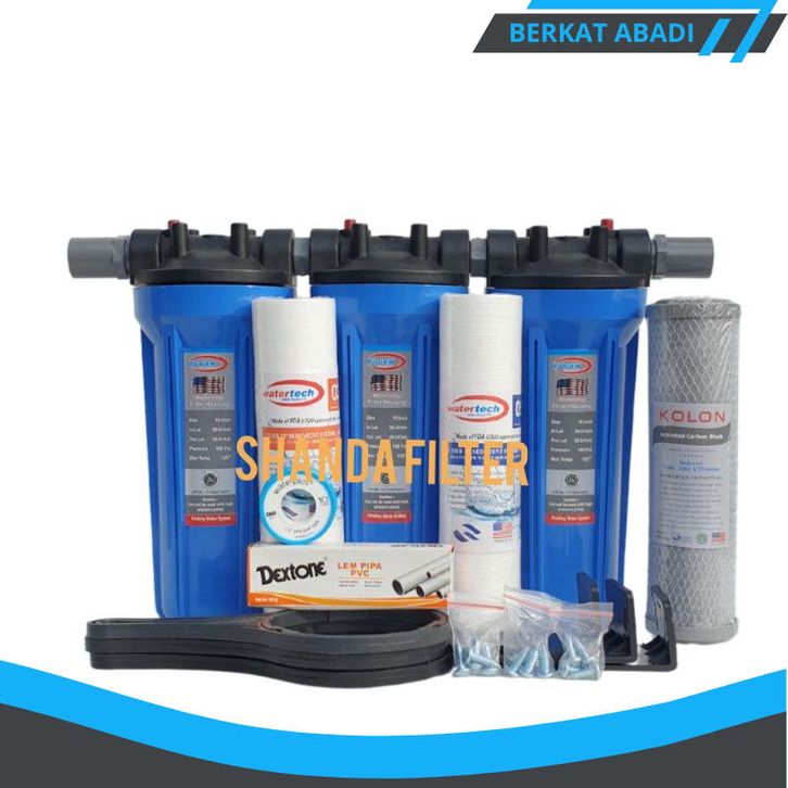 Paket Filter Air 3 Saringan Siap Pakai (Blue 10" drat 3/4" SSC)