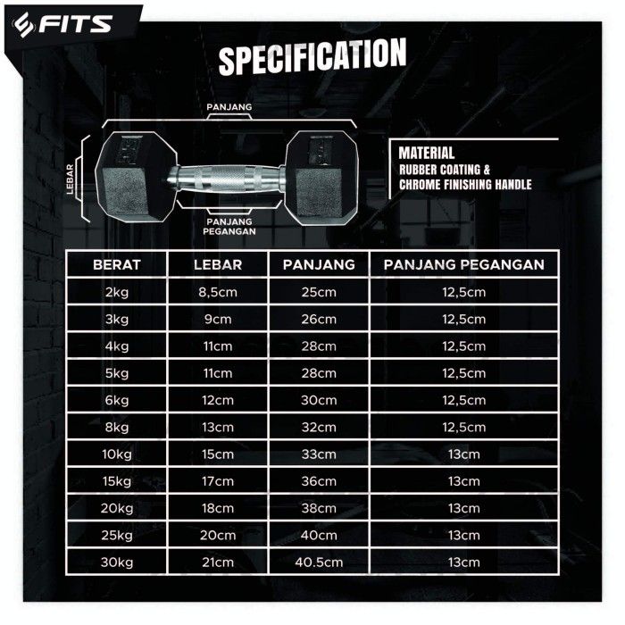 FITS High Quality Hexagonal Dumbbell 2 - 10Kg | Barbel Dumbell Dumble Barbell - Hitam 2kg