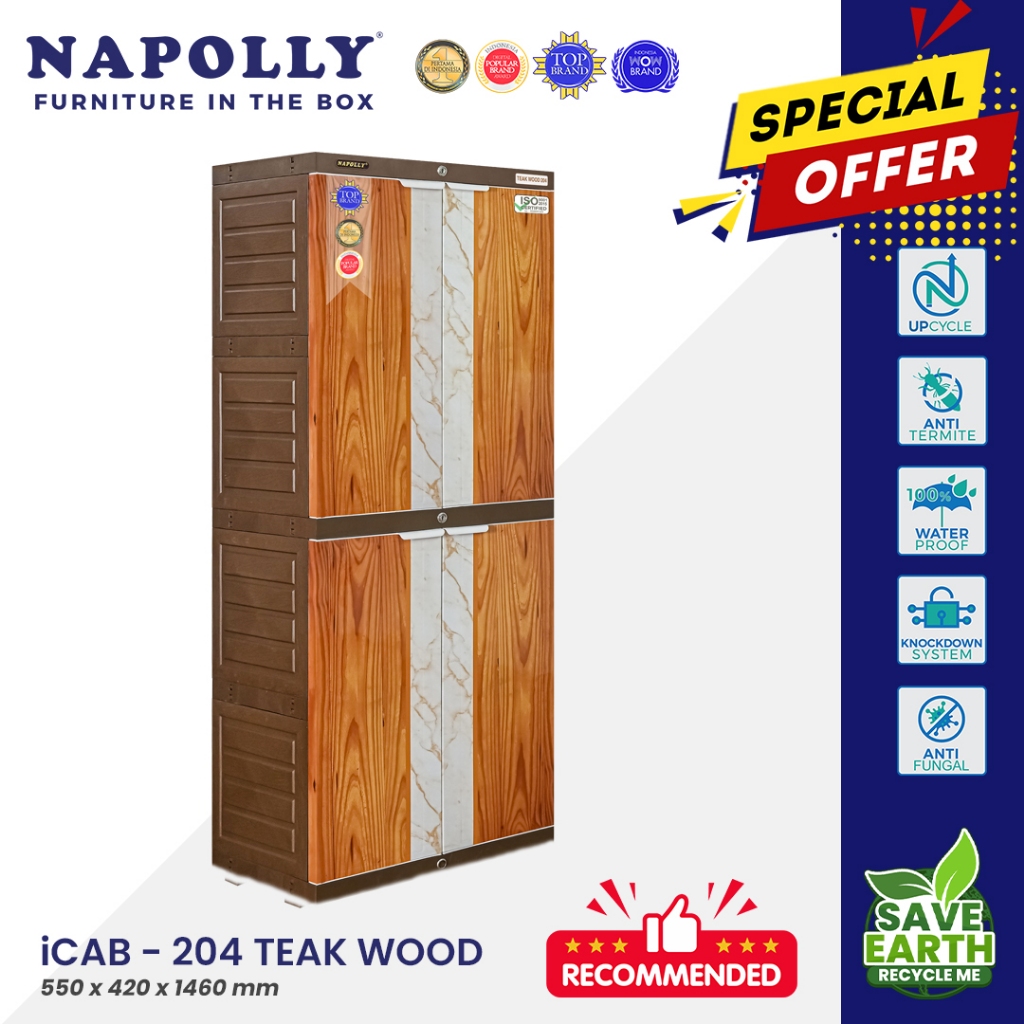 Lemari Pakaian Plastik Napolly iCAB-204 TEAK WOOD