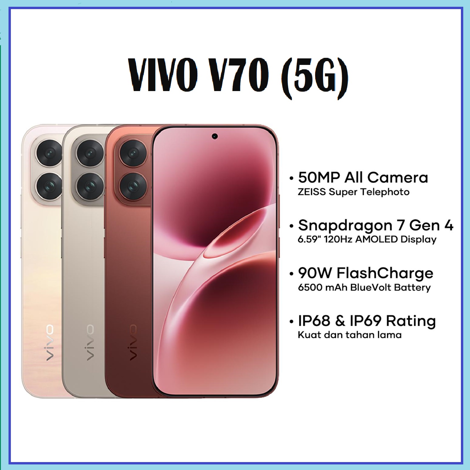 VIVO V70 (5G) RAM 12/256GB BARANG RESMI READY STOK / VIVO V70 FE VIVO V60 VIVO V50 VIVO X300 VIVO X200 VIVO V70