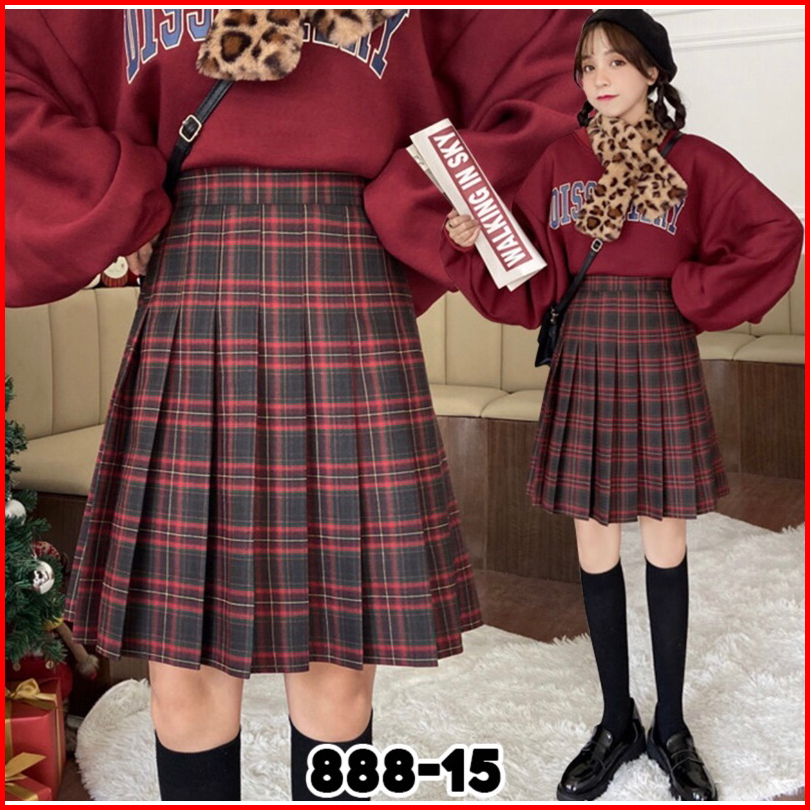 Rok Kotak-kotak Wanita Korean Style Rok Kotak-kotak Korean Panjang Selutut Rok Korean Tren