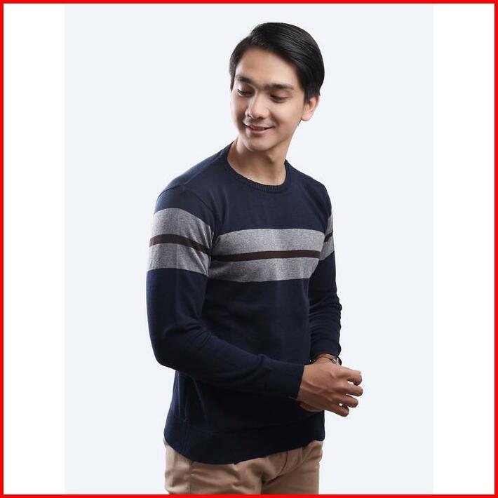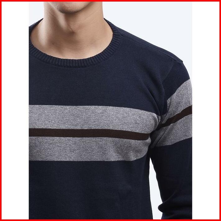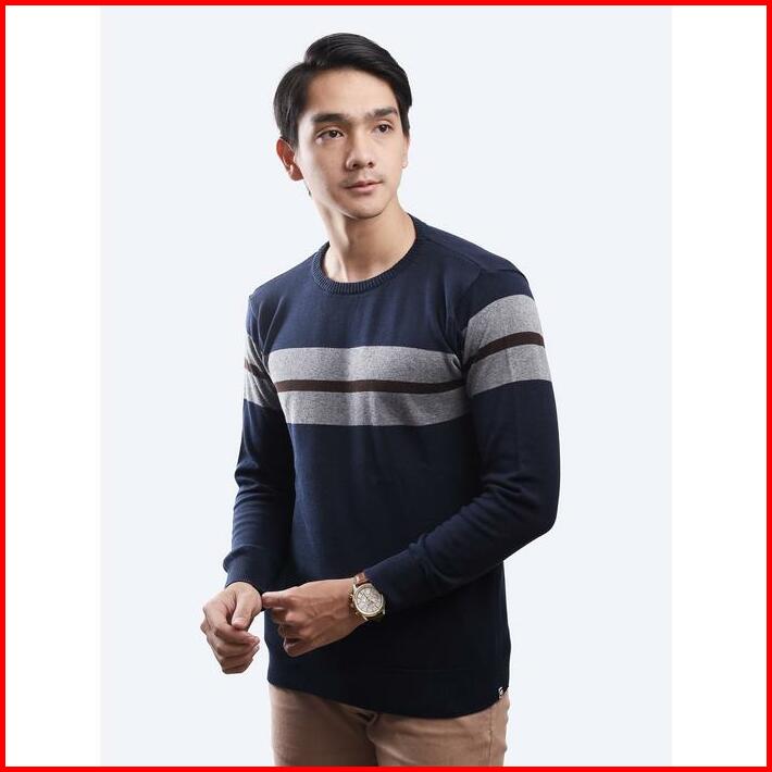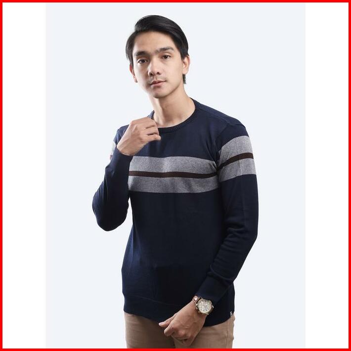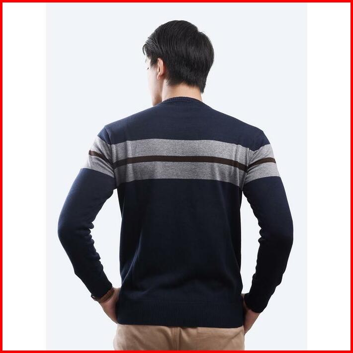 Gomuda Sweater Rajut Pria Crewneck Motif Stripe Blur Grey Coffee