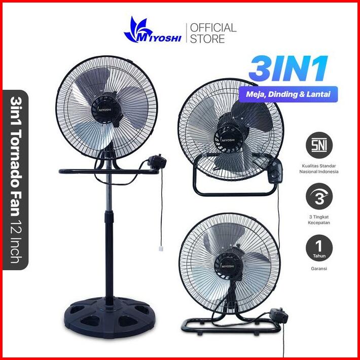 Miyoshi 3in1 12 Inch Kipas Angin Tornado 12 Inch 3in1 Kipas Angin Berdiri Duduk Dan Nempel Di Tembok