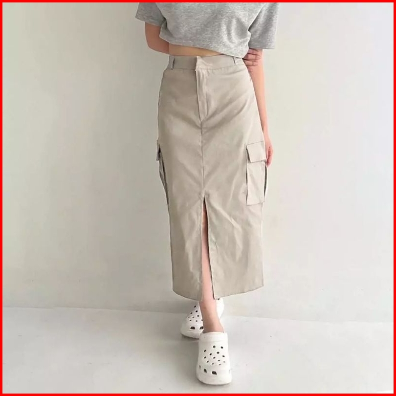 Rok Kargo Belah Depan Skirt Korean Style Wanita Kekinian