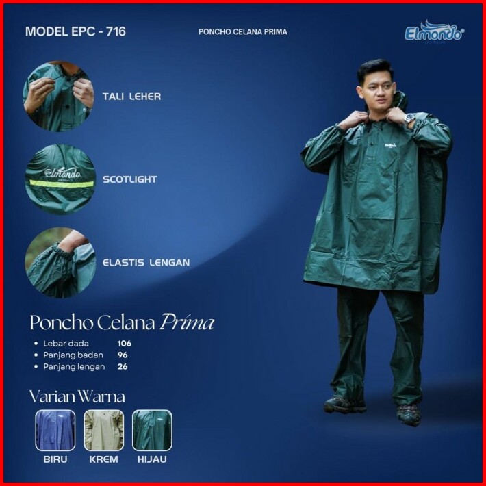 Jas Hujan Ponco Lengan Celana Pria Wanita Dewasa Elmondo Prima 716